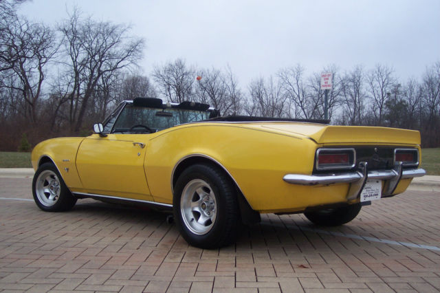 1967 CHEVROLET CAMARO CONVERTIBLE REAL HEADTURNER WE SHIP CARS WORLDWIDE!!! HARD TO FIND THEM THIS SOLID.... SUPER SHARP CAR! Fully Equipped: Original factory convertible NEW crate V-8 Auto transmission Power Steering Center counsel shifter Bucket seats THIS IS A GREAT LOOKING 67 CAMARO CONVERT! THIS CAR RUNS GREAT WITH A NEW 350 CRATE MOTOR>.. NEW SMALL BLOCK 350 WITH 2 SPEED AUTO TRANS. POWER STEERING, NICE SLOTTED WHEELS AND TIRES. CAR PERFORMS NICELY DOWN THE ROAD, HANDLES WELL AND IS VERY EASY TO DRIVE! OVERALL NICE DRIVER QUALITY CAR. PAINT IS GOOD (SHOWS AGE IS VERY PRESENTABLE- HAS ROCK CHIPS AND SMALL BLISTERS LOW ETC),INTERIOR CLEAN WITH NO RIPS IN THE SEATS,CARPET,DASH GOOD ETC. NICE UNDERCARRIAGE AND TRUNK! SUPER BUY HERE-DEFINITELY A GREAT INVESTMENT AT THIS PRICE-THIS CAR IS PRICED AT THE SAME LEVEL AS COUPES! CAN HAVE MOST CARS SHIPPED WITHIN CONTINENTAL US FOR $650.00 WITH THE EXCEPTION OF FAR WEST STATES ETC. COLLECTIBLE CAR HERE! *** THIS CAR IS A SUPERB INVESTMENT!....*** WE HAVE A CLEAN CLEAR TITLE IN HAND! VERY VERY SHARP HONEST CAR-THIS ONE WILL ONLY GO UP IN VALUE! ***HIGHLY COLLECTIBLE*** We are a licensed IL dealer located in Naperville,IL so bid with confidence. ***Please visit us at Classicautohaus.com for many more classic cars!!!*** We will assist with worldwide shipping. We have sold cars to South America (Chili),Europe,Netherlands,Spain,Asia,the list goes on! There are 51+ pictures if they do not download right away please hit your refresh button. SERIOUS QUALIFIED BUYERS ONLY PLEASE. If you place a bid on this car and you are the winning bidder you are entering into a legally binding contract to purchase. Advertising on Ebay is very costly and time consuming. We will pursue non-paying bidders to the highest extent. Please call or email with questions you may have about the vehicle prior to making an offer. We do reserve the right to end this listing early for it is advertised locally. We try our best to describe our vehicles but please Don't assume anything 630-416-1600 we are more than happy to answer your questions. Thank you!