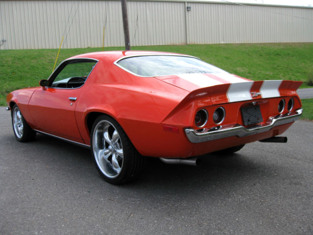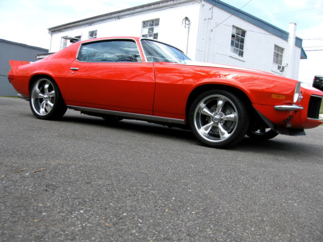 ** PLEASE READ BEFORE ASKING QUESTIONS or BIDDING!! Thank You! FOR SALE: 1970 1/2 CAMARO RS . (i am listing for a GOOD FRIEND!) THIS CAMARO WAS FOUND in SOUTHERN VA. FROM A GENTLEMAN THAT HAS OWNED IT SINCE 1988! IT IS A REAL RALLY SPORT (split bumper) CAMARO. AND according to last owner ,HAS A NEW ZZ 427/480 ALUMINUM HEAD (L88) GM CRATE ENGINE w/ NO PROBLEMS,FIRES RIGHT UP, SOUNDS WICKED! RUNS STRONG (on Pump Gas)! w/ NEW "PYPES" "X" EXHAUST OUT the BACK.. w/engine HOOKED TO a 4 SPEED TRANS i think is a BORG-WARNER T-10 w/Hurst Shifter. REAR END is a 12-BOLT multi-leaf w/ 3.55 or 3.73 gear. HAS FRONT and REAR F-41 SWAY BARS. POWER DISC BRAKES. POWER STEERING. TILT STEERING COLUMN. TACH and GAUGES(tach Not working). New BODY Bushings, etc. THIS CAMARO RUNS and DRIVES GREAT. SITTING on NEW 18x8 and 20x9 1/2 COY POLISHED ALUMINUM WHEELS and NEW TIRES! THE PAINT is HUGGER ORANGE w/WHITE Z STRIPES,VERY SLICK PAINT, STRAIGHT BODY, NOT PERFECT but NICE! NO RUST BUBBLES. Has New steel Cowl Hood. THE 2 DOOR GLASSES and BACK GLASS HAVE a FEW SCRATCHES (look original). CHROME around w/s and back glass also LOOKS Original and SHOWING there Age. INTERIOR LOOKS NICE , FLOOR PANS, TRUNK PANS are SOLID as a ROCK! Has Spare and Jack in Trunk.. ALL LIGHTS,TURN SIGNALS,BRAKE LIGHTS,HORN are WORKING. THIS RS CAMARO is NOT a PERFECT 999 pt SHOW CAR but HAS THE LOOK of ONE that could be $60k or $70k Worth! THIS is a MUST SEE and DRIVE Camaro ,, That is Priced Right!! PLEASE SEE THIS CAMARO for YOURSELF!! LOCATED in MOUNT AIRY ,NC 27030. The Camaro is available to be Seen and or Inspected @ Anytime.. i am fair an honest in all my business transactions AND i EXPECT the same in RETURN! We can ALSO Help Arrange Shipping if Needed. PLEASE ask any QUESTIONS thru eBAY or CALL ME @ 336.648.1969. THANKS for LOOKING!