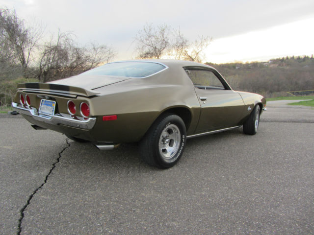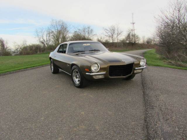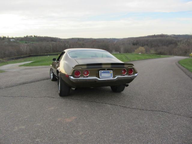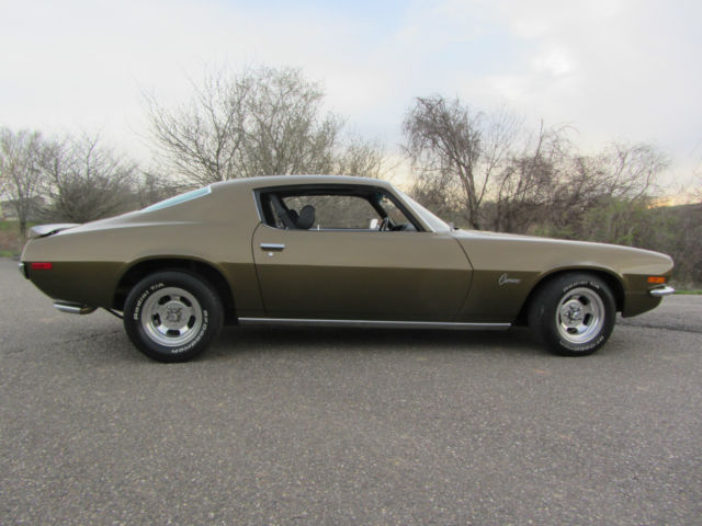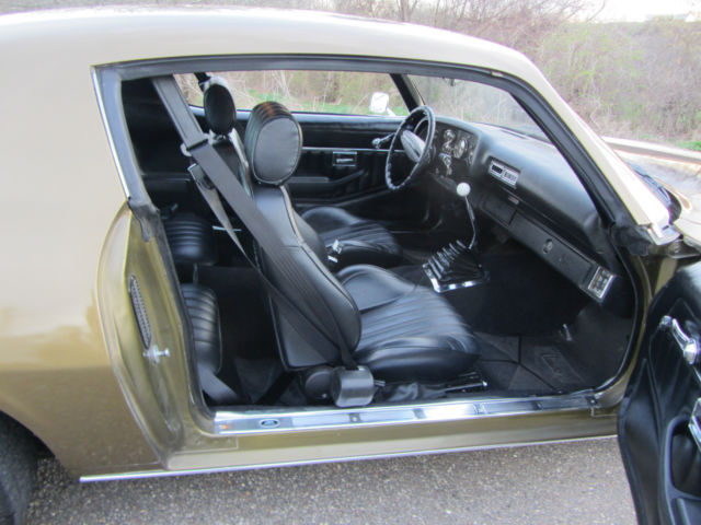 1972 Camaro placer gold metallic spent it whole life in bakersfield california as a factory 350 4spd. Family owned since new, father then son. The title is still a clear california title in there name. Camaro now has a tribute split bumper not a original split bumper car!! Engine is a Proformance Unlimited 383 stroker 400hp crate motor. Has march proformance pulley kit also has after market airconditioning.. Dual fans aluminum rad. MSD inginition. Hurst Driveline Conversions Deluxe TKO 600 Tremec 5 spd with 11in clutch. The rearend is a gm 12 bolt 373 posi. Exhaust is flowmaster thunder series dual system. The dash is done with Classic Instruments all american knickle series. Interior is very nice cond. with custom front buckets. Radio delete. Paint and body are nice above driver quality has some body work done in the past showing in some spots this is a cali. car with very little rust ever. Floor pans rockers are %100 original untouched rustfree unbelieveable clean. This camaro run and drives awesome. This is NOT a show car. It is an awesome clean driver. The drive line has 5k miles since done in 2010 with over $15,000 in receipts just for the motor, tremec setup,12 bolt rear end, Dash, march pulleys that come with car. I have the clean california title in hand.