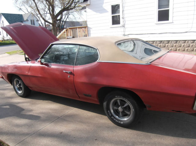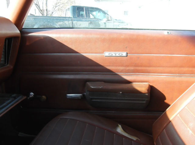 What made me look at this car was the previous owner. he called me and told me it was owned by ELVIS. and it was...just not Elvis "Presley".This car is a driver dream come true. You get the build sheet!! Judging by the a/c condenser-see pic's as well as the interior and completeness of car-it seems to be a 63,000 mile car/survivor. The dash is very cracked up and tach is missing (a replacement is on E Bay for $190.00) and the center dash vent is laying in back seat (to get tach out I assume), the front windshield has a crack in upper left corner, the vinyl top is driver quality with typical rust around rear window. The quarters have had patch panels done and show it, trunk needs work (what GTO doesn't?) the trunk lid is bubbly rust and I would replace it if restoring. Rear bumper needs rechromed or replaced.The tires are VERY bad. I only drive it locally. The pass side sport mirror is missing(easy to find them). The rear valance panel is gone (I will supply one from another car). If you are looking for a show car-you have a lot of work BUT THIS car is a GREAT starting point! VERY FEW parts are missing! It runs and drives GREAT! It has heavy duty Y96 firm ride group, 3.23 open axle ratio, dual exhaust, deluxe belts, bucket and console, a/c (minus compressor and mount brackets, 400 4barrel and even the dual snorkel air cleaner!! ALL the front supports and hardware are there.The floor is very good, the frame is GREAT! Side and rear glass is all good. Trim on outside is ALL intact!! The rear sway bar and boxed control arms are still there! Brakes are good and solid (they are front disc rear drum), the doors are pretty dang good. Tranny seems to shift great-lights all work- TWO of the headlights are STILL original T-3's! If you are looking for a decent driver or a numbers matching car to restore as you go-this car is excellent! Bid like you mean it-this car is for sale locally on April 15th and it WILL sell to highest bidder locally or nationally by April 18th.