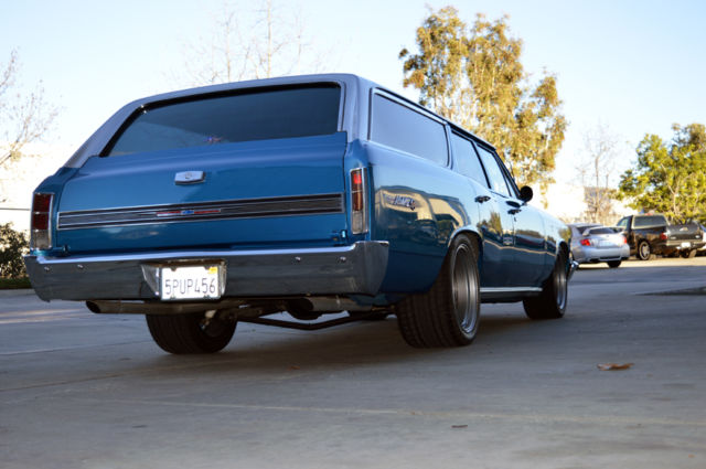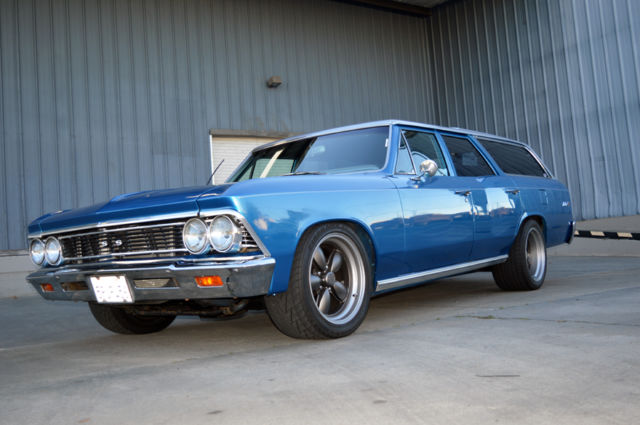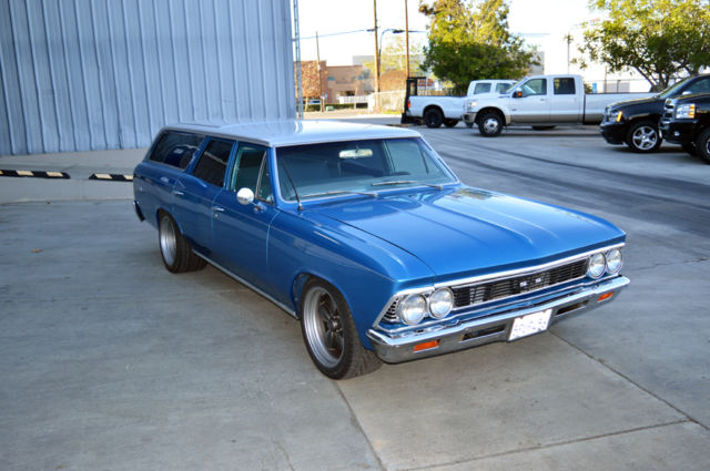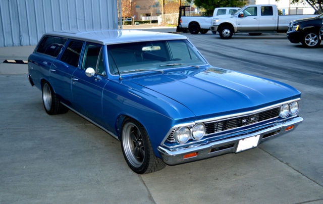 Car enthusiasts don't often consider driving a Mini-Van, and why should they when this hot rod is available? Shuffling kids here and there, grocery runs or taking long trips in style and comfort, nothing is cooler than doing it in classic wagon. A fine example is this 1966 Chevrolet Malibu Wagon. The combination of the Chevroletâs potent 327 cubic inch small block engine backed by an upgraded 700R4 overdrive automatic transmission makes for a fuel efficient yet responsive driver. The two- tone Blue and Silver paint makes this car pop and the lowered stance and American Racing 200s Classics give it a low aggressive look. Inside the blue cloth interior is in great condition and makes for a comfortable ride. A Grant Steering Wheel and B&M Shifter provide effortless control courtesy of power steering and fresh power braking system, including new master cylinder, reservoir, booster, rotors, Calipers, hard and soft lines. If you need a little more hauling room the back seat folds down to provide increased cargo space or you can use it to relax at a picnic while listening to tunes from the Alpine stereo system. This Wagon is ready to roll, or to add those personal touches to make it distinctively yours. Please review the additional details below and if interested or have any questions please send a message. 1966 Chevrolet Malibu Wagon Mileage on Odometer: 72,666 Exterior: Two-tone Blue with Silver Top Interior: Two-tone Blue & Light Blue cloth, Bench Front Seat, Fold down rear seat Engine: SBC 327 c.i. w/ âfuelieâ heads, 4 barrel Edelbrock carburetor, HEI Distributor. Custom Chevrolet Engine Dress up kit Set of Billet Aluminum Pulleys Cross Flow Aluminum Radiator 2.25â Flowmaster Exhaust Transmission: 700r4 Overdrive Automatic, recently rebuilt. B&M Shifter Stock Sweep Speedometer w/ clock Auto Meter Gauges: 3â Sport-Comp Tachometer & 2â oil, H20 Temp & Volt Grant Steering Wheel Tilt Column Power Steering Power Brakes: New Front Calipers, Pads & Hoses New Brake Booster & Master Cylinder Rebuilt Rear Drum Brakes, New Shoes & Hoses Over-sized Front & Rear Sway Bars Hotchkis Trailing Arms Rebuild 10 Bolt Rear-End New Driveline American Racing Classic 200S Rims, 17âx9â, 275/40zr17(f), 17âx12â, 315/35zr17(r) AM/FM w/ Satellite Alpine Stereo with replaced speakers SFI Safety Belts (Lap only) Fresh Paint