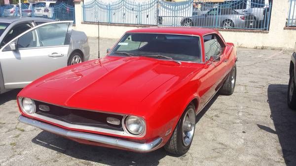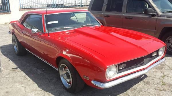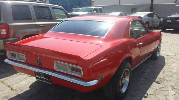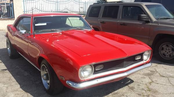 -Rare 1968 chevy camaro -ALL ORIGINAL -1st gen Camaro had THE LOWEST production numbers of all three years 1967 1968 and 1969  -1968 being the rarest and last of the unibody  -Straight as a arrow this body is PERFECT  -NO rust. Paint and body guys spared no expense and it looks amazing! -GREAT interior -Runs and Drives GREAT - Original Rally Wheels -Matching Numbers -Current Tags  -Clean Title -Current registration UPGRADES: -Holly 4 Barrel Carb cost $550  -CUSTOM body work look at the wing looks amazing you will not see this on any other Camaro. (This alone took one month)  -NEW suspension  -NEW shocks  -Brake booster -Brand NEW crate v8 350 motor   -Professional interior top to bottom looks amazing -Crome covers  -Sound system and 12in Sub in rear Padded trunk fully finished looks amazing.  -NEW power steering  -disc brakes -BRAND NEW PAINT JOB just finished it took 2 months cost 6k car looks amazing.  Duel flow master exhust sounds very powerful Alot more has been done everything has been touched on the car. Runs and drives great. I have pictures of paint process and receipts and warranty on alot of the parts. Brand new out the crate V8 350 powerful engine paired with the flow masters it sounds like a beast. This camaro drives like a brand new modern car but all the amazing looks and feel of a 1968 Camaro. This car is awesome and ready to go. My team and I have put tons of work into it. Call (240) 374-2620 If you have any Questions. I put way more Than 25k  into the car. Car is in santa clarita by Magic Mountain call today will not last long.