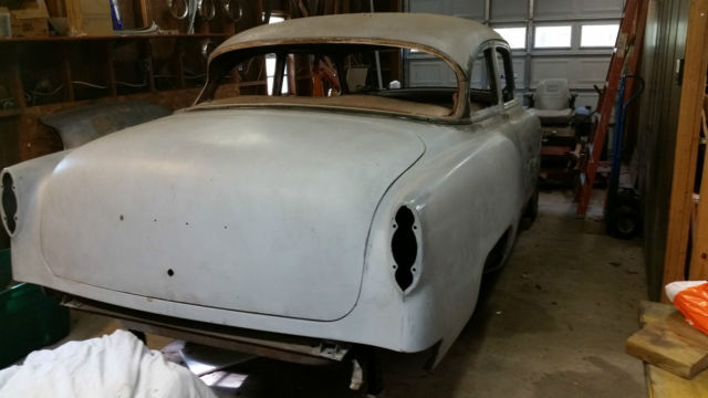 For consideration this 53 Chevy 210 2Door . No engine or trans. A mostly complete original project car that has already having completed couple hundred hours with body work done and ready for paint. Body stripped to bare metal and primed . Car has no rust cancer anywhere on car, zero rust thru in tail pan or rocker panels which is one of the first places these get cancer. No thin panels from inside out rust. Has original front and rear seats in very good condition . About the best condition seats I have seen but need recovered. Mustang 2 front clip installed with power steering rack and pinion. Car has all inside and outside trim in very good condition but stainless will need polishing to make perfect. Has all the door hardware and window frames. Have new rear glass but no front windshield. will need side glass. 68 Camaro rear end. Hood and fenders striped and primered. Original not repops front and rear california bumpers with brackets. Chrome stripped so they can either be painted or rechromed. Complete front grill with no dents . torn down ready to be chromed. I have lots of new parts ( rechromed grill , power brake kit, trans kit, mercury French headlight kit, gauge cluster, chrome tilt steering column, fresh rebuilt 3.55 posi Camaro 10 bolt rear end etc. ) for this car not part of sale but will be advailable to buyer if interested in purchasing them.