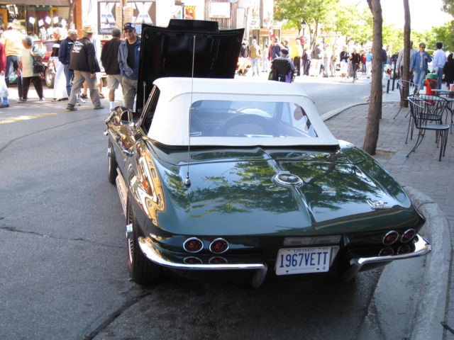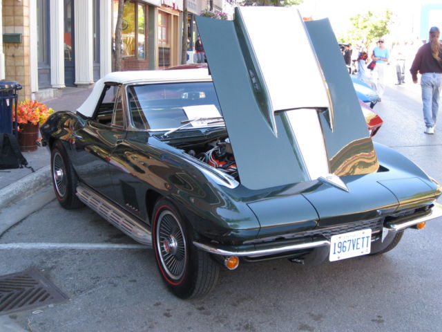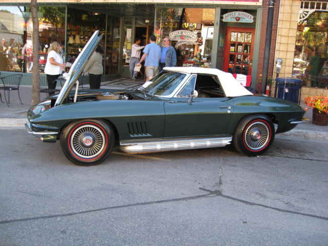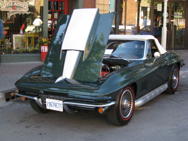 Car is mint mint mint condition with totally frame off body restoration that is totally documented with over 500 photos. This is Including rebuilt numbers matching motor and transmission. This Car is from Canada originally and all papers follow it through its life to USA and back to me in Canada. Dynoed at 488 at rear wheels.less than a 1000 kms on it since restore. Car has every option, Air, Knock offs, tele wheel, PW, Side Exhaust, AM/FM radio (works) Clock (works), Red lines, Leather,and more Had it appraised at 195k CDNThis car is a Southern USA Car and in near perfect condition!! Motor and Transmission total rebuilt Gorgeous Collector Car with Optional Hard Top included. If you are looking at this add and shopping for a highly collectible Big Block Vette look at the options and value here. Ask me questions make me an offer, may look at a small trade but not really needing any other toys have too many, but who knows right? Car is located one hour north of Toronto in a heated garage. Have a full appraisal for $195k CDN, documented and detailed photos of every step of restoration. $ 160K invested in car Buyer makes all arrangements for pickup etc Payment is to be made by Wire before it leaves my Garage Thanks Cliff