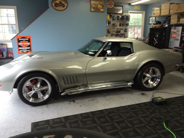 1972 Corvette... The last year of the chrome bumpers. This car was always my dream so I decided to build one for myself. I'm not a fan of matching number cars I like a lot of power and a transmission with an extra gear so your not running high RPM's when driving on the highway. If you want a numbers matching car then this one isn't for you. I built this car with the intentions of keeping it forever. However after it was finished I realized that I made a huge mistake. I built the car so nice that I don't want to drive it, I'm scared of a deer running out in front of me or getting a stone chip in the paint etc. I drove the car home from the body shop and it has sat in my garage ever since. I do start it and keep it on a battery tender and I have really enjoyed looking at it. The car is so perfect and clean that I can't bring myself to getting it dirty or risking any damage. So I figured it needs to go to a collector or someone who isn't as attached to it as I am. I'll give you a brief description of the car. I'm sure the pictures will tell more then my words. If you have any questions please feel free to ask. 1972 Corvette stingray coupe complete frame off restoration. Painted in 1972 corvette pewter/ silver. wet sanded and polished to a mirror finish. 502 Big block crate motor right from GM with a 3yr warranty. 700r4 Hughes performance trans rated for 600hp. Power rack steering Custom built carb Griffin aluminum radiator with dual electric fans Performance suspension Wilwood 4 wheel disk brakes with SS lines Hooker headers and side pipes Centerline wheels Interior is completely restored Every piece of chrome was redone to show quality Every nut, bolt and wire has been replaced or restored. I could go on and on describing this car from the new fuel cap to the headlight rebuild but I think most of you will know what your looking at and if not just ask me. I have over $80,000.00 invested in this car and should have all the receipts for the buyer. I'm inviting anyone interested in this car to come and see it in person.