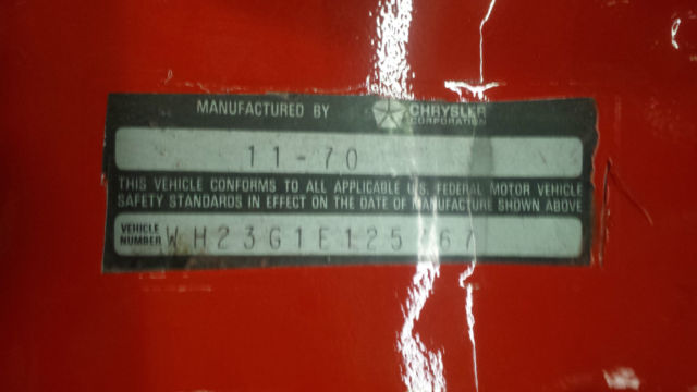 | VIN (Vehicle Identification Number): | wh2361e125767 | Year: | 1971 |