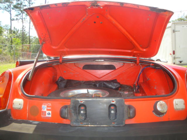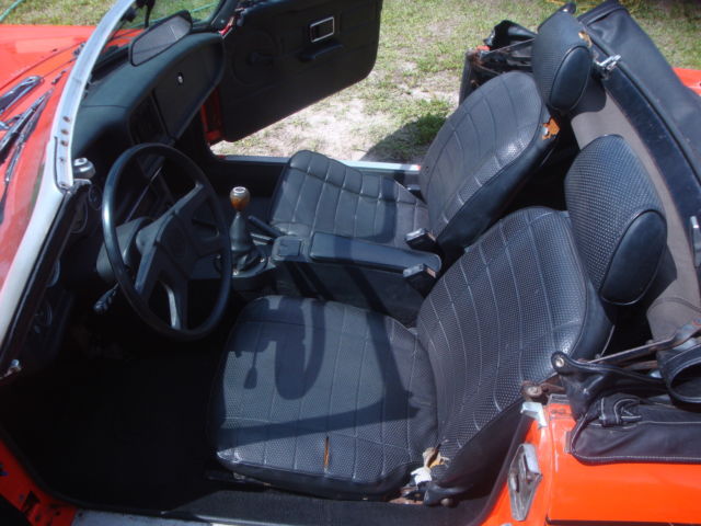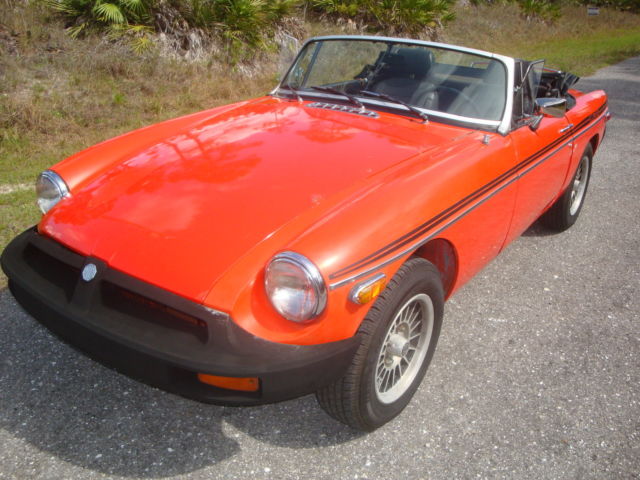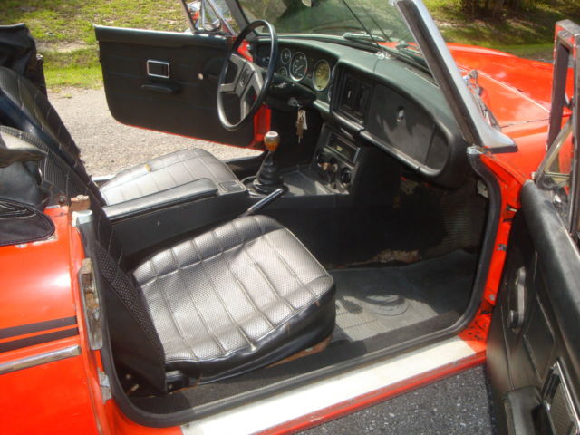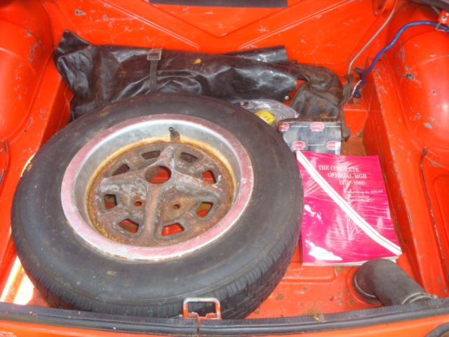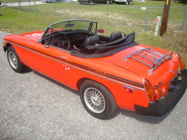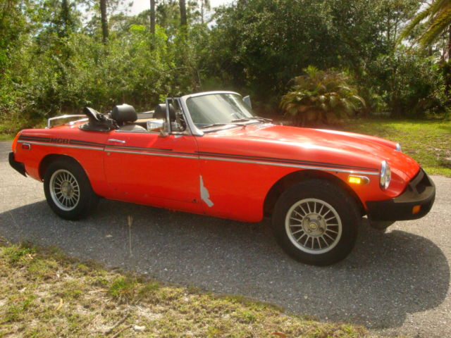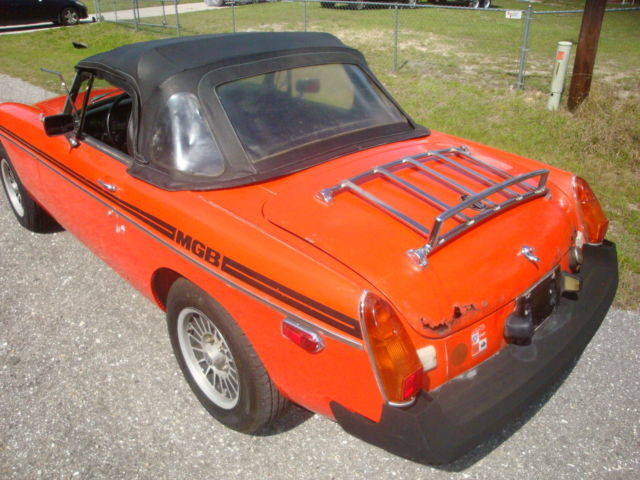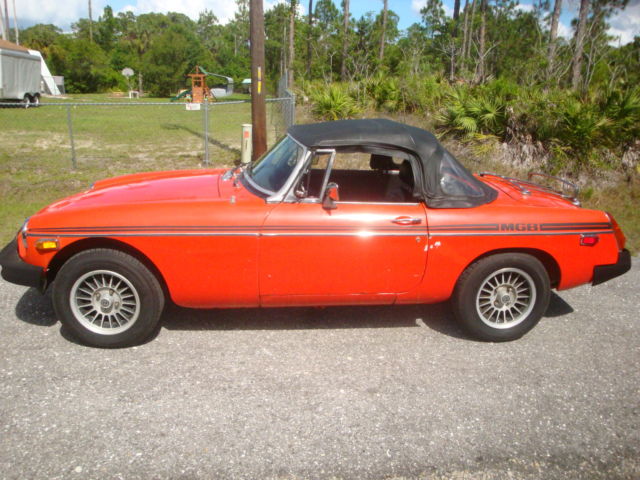 1979 MG MGB CONVETIBLE. 1.8L 4CYL. 5SPD MANUAL TRANSMISSION. MANUAL CONVETIBLE TOP. POWER BRAKES. 14'' ALLOY WHEELS. CLICK ON VIDEO LINK FOR YOUTUBE.COM- https://youtu.be/wYAoKVnd5hE . ENGINE- (SEE VIDEO) RUNS BUT NEEDS TO BE REBUILT. HAS TWO CYLINDERS WITH LOW COMPRESSION AND TWO WITH GOOD COMPRESSION. THE HEAD GASKET OR HEAD NEED TO BE FIXED AS WELL, NOT SURE JUST THAT WATER GOES INTO OIL AND EXHUAST. I HAVE CHANGED THE OIL AND LEFT THE COOLANT EMPTY. HAS A NEW WATER PUMP INSTALLED. AGAIN ENGINE STARTS AND RUNS (SEE VIDEO). TRANSMISSION- SHIFTS OKAY. BRAKES- STOP GOOD. HAS NEW REAR LINES AND FLUID HAS BEEN CHANGED. PADS, ROTORS AND DRUMS ARE OKAY, BUT HAVE NOT BEEN CHANGED BY ME. RIMS- 14'' ALLOYS WITH FOUR GOOD TIRES. BODY- HOOD AND TRUNK HAVE RUST. DRIVER AND PASSENGER FLOOR HAVE SOME RUST, SEE PICTURES AND VIDEO. SOME RUST BUBBLES ON DOORS. THE REST OF THE CAR IS OKAY. PAINT HAS SOME PEELING. I HAVE AN NICE ALUMINUM HOOD THAT CAN BE BOUGHT FOR $320.00, plus shipping. CAN SEND PICS IF NEEDED. TOP- OKAY, HAS SMALL TEARS ON WINDOW AREA (SEE PICTURES). INTERIOR- SEATS HAVE SMALL TEARS (SEE PICTURES). DASH IS NICE. GAUGES ALL FUNCTION. WORKING CLOCK. ALL FORMS OF PAYMENT MUST CLEAR BEFORE SHIPPING OF CAR OR MAILING OF TITLE TO BUYER. CLEAR FLORIDA TITLE IN HAND. EMAIL ME ANY QUESTIONS AND HAPPY BIDDING.