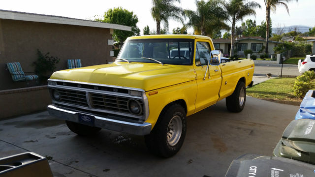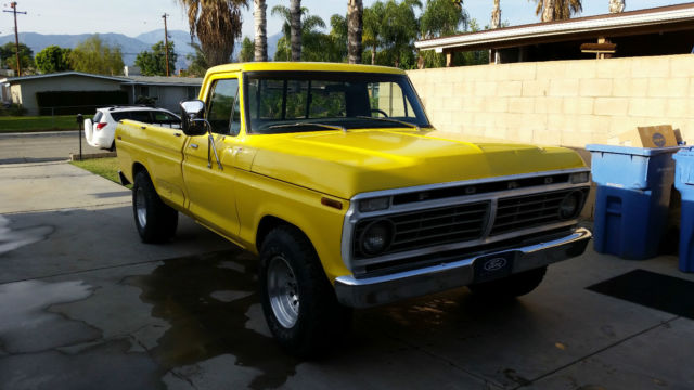 FOR SALE - NO RESERVE AUCTION!!! TRUCK WILL BE SOLD 1973 FORD F-250 PICKUP TRUCK - 390V8 - AUTOMATIC BLACK INTERIOR, CLEAN REBULIT MOTOR -10,000 MILES BRAND NEW TRANSMISSION BRAND NEW EXHUAST ZERO RUST CALIFORNIA/ARIZONA PICKUP TRUCK TRUCK RUNS LIKE A NEW TRUCK ALUMINUM ALLOY WHEELS NEW SPRAY ON BED LINER STEREO SYSTEM WORKS GOOD 33" TIRES THINGS THAT NEED FIXED: FUEL GAUGE, SECONDARY TANK HAS NOT BEEN USED IN YEARS AND IS UNKNOWN IF IT WILL WORK, AND WILL PROBABLY NEED TO BE CLEANED. PAINT IS PASSABLE BUT WILL NEED A NEW PAINT JOB TO BRING THE TRUCK TOGETHER, ITS CHIPPING IN SOME PLACES, ITS GETTING OLD, BUT ONCE PAINTED, IT WILL BE A PERFECT TRUCK. BUT FOR NOW PAINT WILL PASS. TRUCK RUNS GREAT, A PLEASURE TO DRIVE, WE USED IT TO RUN FOR GROCERIES AND WERE PLANNING ON GETTING IT PAINTED, THE BODY IS IN GREAT SHAPE EXCEPT FOR ONE SAMLL DENT ON THE HOOD. ASK ANY QUESTIONS ILL ASSIST IN ANYWAY I CAN. IVE SOLD VEHICLES IN THE PAST ON EBAY YOU CAN CHECK MY FEEDBACK I TRY TO MAKE THE DEAL AS PAINLESS AS POSSIBLE. SHIPPING IS THE BUYERS RESPOSIBILITY BUT I WILL BE HAPPY TO ASSIST. PLEASE ASK ANY QUESTIONS, THIS TRUCK IS FROM THE 70'S AND PLEASE DONT EXPECT IT TO PERFECT. THE TRUCK IS FOR SALE LOCALLY AND WE RESERVE THE RIGHT TO END THE AUCTION AT ANY TIME. WINNING BIDDER NEEDS TO SEND DEPOSIT VIA PAYPAL WITHIN 48 HOURS. DEPOSIT IS $500. THE BALANCE IS DUE IN FIVE DAYS AND I CANNOT ACCEPT PAYPAL FOR THE BALANCE I WILL ACCEPT CASH, BANK CHECK, OR A WIRE TRANSFER. IF YOU CAN MAKE IT TO POMONA CALIFORNIA STOP IN AND CHECK THIS TRUCK OUT, YOU WILL NOT BE DISAPPOINTED. PLEASE DO NOT BID UNLESS YOU INTEND TO PAY!! THANKS FOR LOOKING!!!! CALL OR TEWXT ME IF YOU WANT TO DISCUSS THE TRUCK - RON 951-743-1362