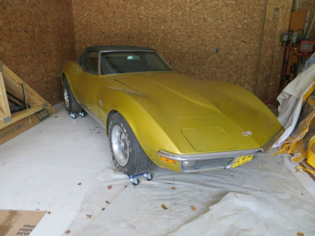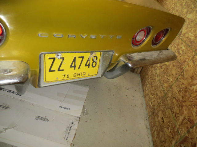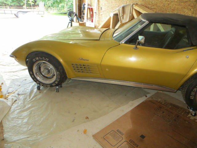 1971 Corvette convertible project car for sale. Car ran and drove 10 years ago when put into storage. Has not run since. Car needs total restoration. Very original car. Numbers matching motor. 71,5XX actual miles. I bought this car intending to do a complete restoration but never got around to it. It has been sitting in my garage since I purchased it. I am the third owner. This car has rust issues. Will need frame repair, windshield frame repair, and birdcage repair. Birdcage repairs require a professional shop that specializes in corvette repair. These repairs are not for the average mechanic. This car will require a complete tear down and restoration but it is a good project since it is all there and nearly all original. You will not be fixing someone else's mistakes or tracking down many parts. Click the link below to view lots of pictures of the car. The license plates on the car are not included. Cash at pickup will work for payment. *Be sure you know what you are getting into before bidding! Windshield frame/birdcage repairs are not something that can be done by just anyone. Corvette restoration professionals are usually needed to complete this task.* http://s942.photobucket.com/user/1975greenconvertible/library/1971