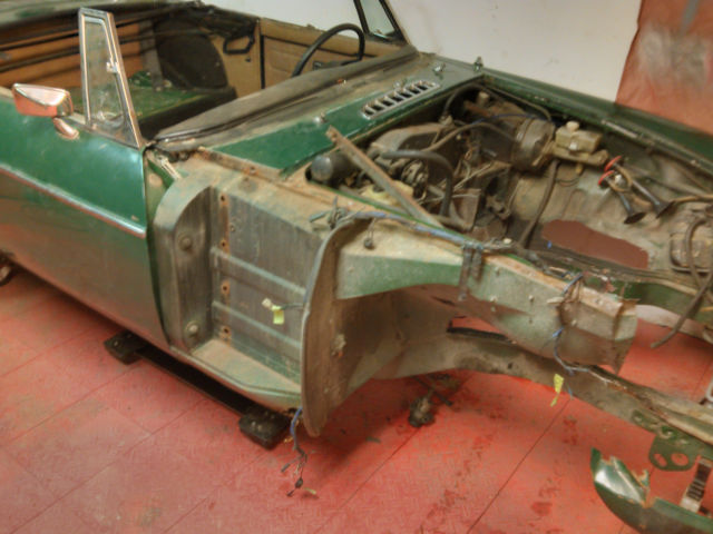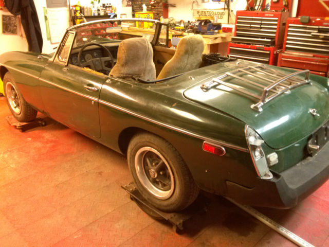 1979 MGB 98% rust free parts car.  I bought the car last fall in running condition.  The car had been in a minor accident, the hood, right fender The hood, right front fender,  part of the right inner right fender, radiator and A/C radiator were  were involved and have been discarded. The frame was not involved the damage was limited to being above the frame. The rest of the body is basically rust free, there is about a quarter size hole the the right rear dog leg and a little rust in the right inner fender which you can see in the pic. The car has A/C which must of been installed by the dealer. I bought the car with the intention of doing a V6 conversion and started the process.  I cut the factory motor mounts out they would have to be welded back on the car if your intention was restoring it back to a n MGB and I modified the front subframe,  Basically the car is complete less the damaged parts from the accident, I should mention the the canvas part of the top will need to be replaced as well. The auction is for the body only, the motor and trans will be sold seperate.