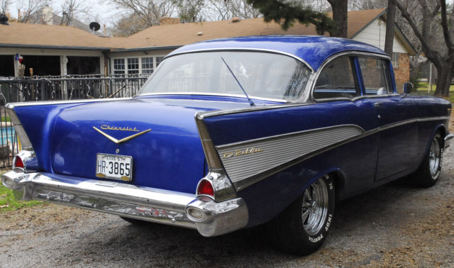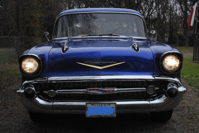 1957 Chevrolet Bel Air 2 Door Sedan, Front Disc brakes, Vintage Auto Radio AM FM Cassette, 350 motor, 700R4 transmission, Crager mags, New Mickey Thompson 70 Profile tires, rear air shocks, Edelbrock carb, Edelbrock intake, Texas car and title Body down to bare metal, removed old bondo, all body parts straightened, rust removed, door sill plates replaced, rear quarters replaced, tail piece in trunk replaced, Chrome replaced or buffed. Paint looks great at 10 feet, but has scratches, and a few bubbles and the paint in not perfect. Fuel gauge works and have working remote gauges for water and oil. New dash set included with car. Glass is good, but front windshield is beginning to discolor at bottom. Gas tank was removed and cleaned. Lights, brake lights, turn signals, and interior lights work. Have numerous pictures of car before repairs, during repairs, and after repairs. Ask for any needed. Call Chuck 205-777-8986 The majority of the work was done in 2005 and 2006 and I haven't been able to complete with all the other cars I've had so it just gets moved around the garage and driven occasionally to car shows. Have thought about selling several times, but every time I get it out and cleaned up, I change my mind and add something else to it like the new tires. Needs supplied dash installed, supplied wiper motor installed, supplied heater parts installed, paint repaired, supplied door handles installed. Beautiful car that needs finished to be a true show car. Always gets a lot of attention at shows IT's A 57 after all. Any questions Chuck 205-777-8986