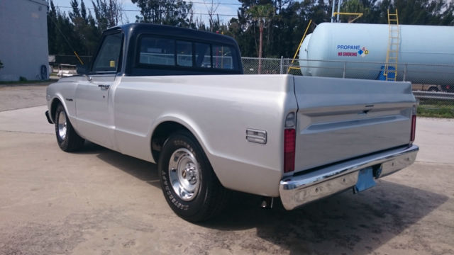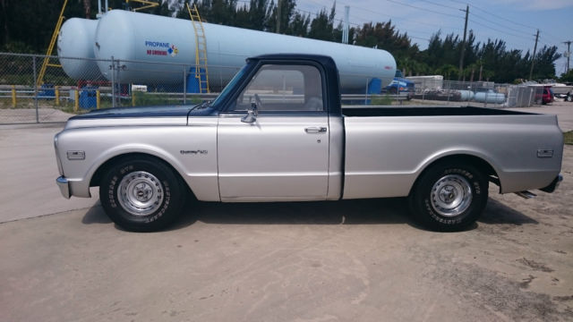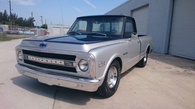 *1969 Chevrolet C10 Short Wheel Base Pickup* Beautiful C10 restored from the ground up! (CLEAN CLEAN) inside, outside, underneath Dependable strong running (great sounding) 305 V8 Automatic 350 Column 3 speed w/ Power Steering This truck has added modified 4 wheel disc power brakes all the way around with 5 lug conversion Lowered 3" springs up front with a NEW 5" drop springs out back Recent two tone paint job (silver and blue) Dual side exit exhaust with chrome tips Custom Vinyl bench seat with matching headliner Chrome accented AC vents Truck is an original AC Chevy, and is set up for vintage air. Currently needs full AC system Even has NEW glove box installed Rear relocated gas tank NEW carpet Solid floor (99% rust free C10) Sliding back glass window This C10 has also had all rust areas fixed and look great! (roof rail drip, bottom rockers, etc) 20 LED tail lights New Chrome bumpers MasterCraft tires with plenty of tread left. Plenty! Restored/Great condition 15" wheels with beauty rings It's a slick looking truck! Call me to schedule an appointment today or shoot me an e-mail. Thanks for the interest in my '69 Chevy pickup. Asking $15,999.00 obo! Please ask ALL questions BEFORE bidding. I have a Youtube video I encourage you to look at , as well as several more photos. Sale of truck will require paperwork provided through my dealership. Florida residents add 6% sales tax.