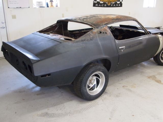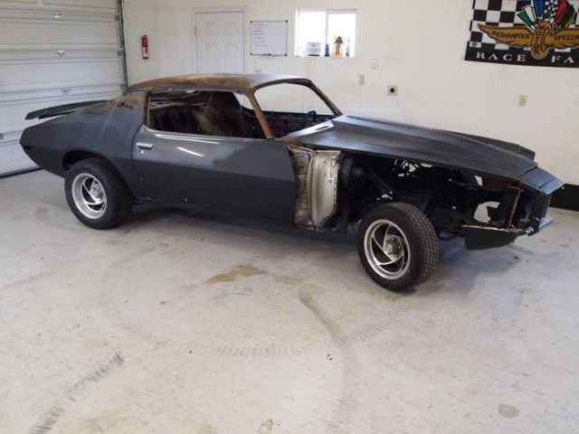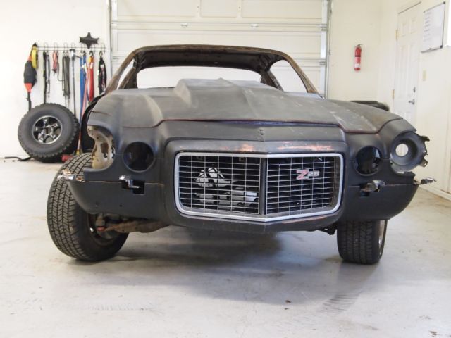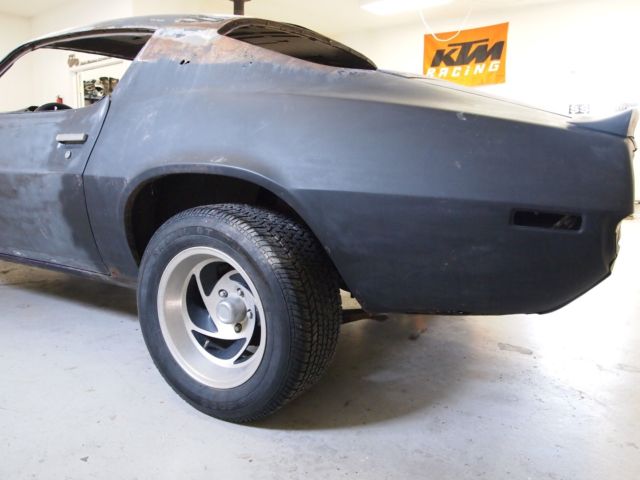 1973 Chevy Camaro Z28 Clone. This car was a base model factory 350, 4 speed manual Camaro... it is NOT a factory split-bumper Z28. The split bumper Z28 front end has been swapped on in the cars past, but everything is there to build a Z28! This is a solid project car, it has a fair amount of rust and needs some body panels, but the floor, rockers and trunk are in good shape. The car had a vinyl roof, which held moisture and rusted out the roof and top of the quarters. The previous owner found a used roof panel and paid someone to weld it on, but the work is shoddy and it needs a complete new roof panel (These can be found for around $400) and patch panels at the top of the quarters. The rear quarters have the common rust spots down low as well. but they're small. There is also a spot of rust on the passenger side A pillar, it could be patched as well. The front fenders are missing. It includes a steel cowl induction hood, small rear spoiler and the 10 Bolt rear end has 3.73 gears and a posi-trac differential. At some point an automatic transmission was swapped in and the hump for the shifter was sealed up, but the pedal is still there for the clutch The windshield is missing, but the rear window is included and is in great shape. Door windows are there, but were tinted and tint was peeled off... they need cleanup. I do have front and rear bumpers and they're actually in great shape. Also have the rear tail lights, headlight buckets and bezels as well as marker lights. Also included are lots of misc parts, panels, badges, sun visors, glove box, trim, bolts, etc. The interior has been removed to see what shape the metal was in, most of the interior was in bad shape and tossed out. Will need new interior, seats, dash, etc. I have the factory gauges, showing the current miles on the car. Has disc brakes in front, drums out back... manual brakes and they do work. Car comes with a CLEAN and CLEAR COLORADO TITLE, in my name!! Relisting due to a flakey auction winner... lower reserve this time around, so get your bids in soon!