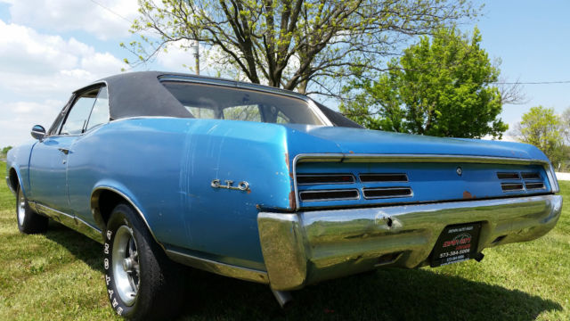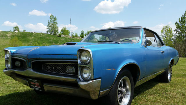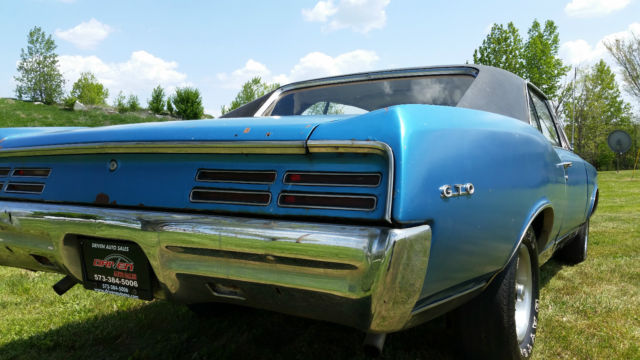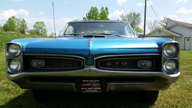 You are looking at a 1967 Pontiac GTO, the last year of the 1st Generation GTO Model. This vehicle is equipped with a NOM V8 400ci with 360HP (the motor is out of a 1974 400 Trans Am) The 4 speed pedals are in the car and this is an original 4 speed car. This is an 80k original mile car It was built in Pontiac Michigan and sold new in St Louis MO. Its been sitting inside on jack stands since 1993. The original Motor and Transmission was taken out and an Automatic Transmission was put in so the wife can drive it. Motor runs great and transmission shifts smooth The front end of the car is completely rebuilt The car is very solid and extremely straight!!! This would be a great project car for someone who wants to buy an inexpensive GTO and drive it while restoring it There is no major rust on this car General Motors Corporation ST 67-24217 PON 996 Body TR 224-B K-2 Paint 2LG 4F 5Y VIN: 242177P105773 If you want pictures of the underside of the car, just email or text me. If you have any question, feel free to call or email Crystal 314-280-8861 crystal.drivenauto@gmail.com