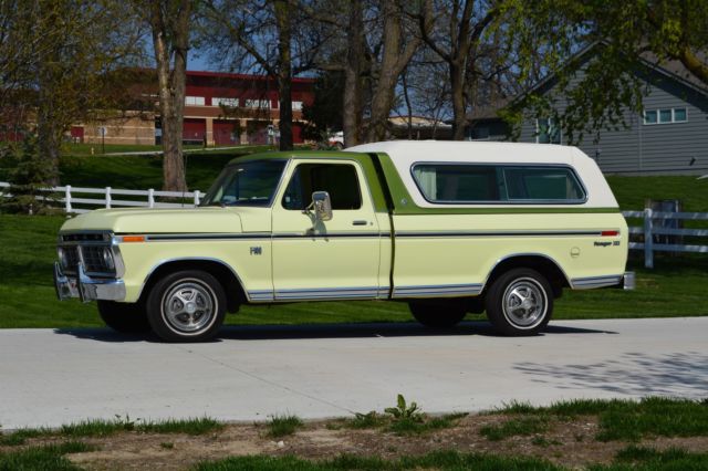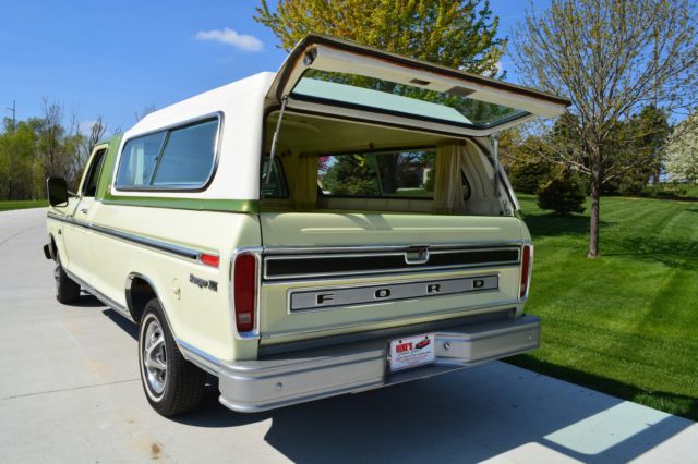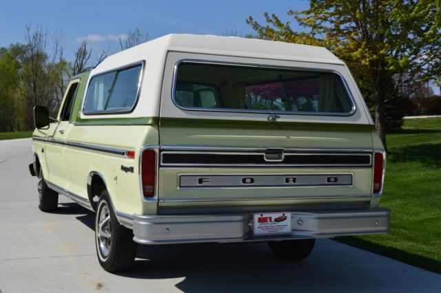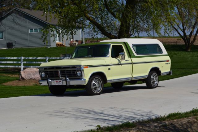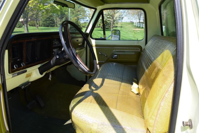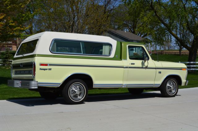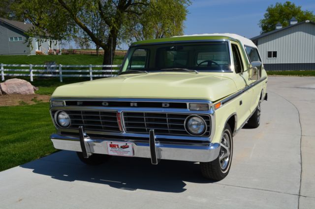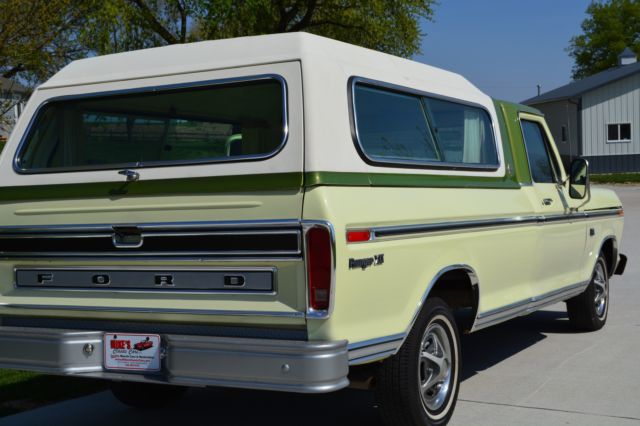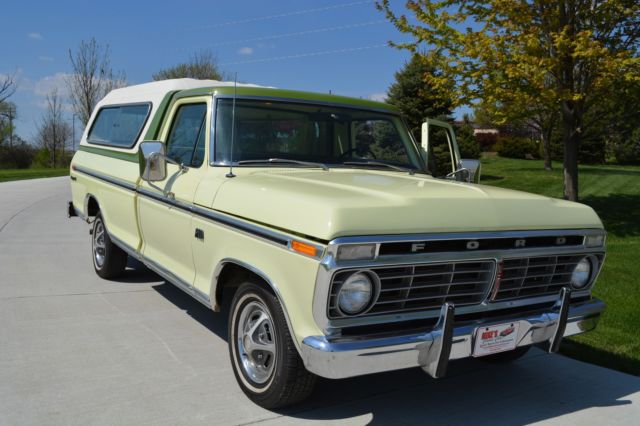 Offering this incredibly low mileage, original 1974 Ford F100 Ranger XLT. I'm selling this out of my personal collection as I'm out of room for my big Ford Galaxies and Shelbys. This beautiful truck won't disappoint anyone. Here's a rundown: Original window sticker 48389 miles Pastel Lime with Limestone Green Metallic tutone 5500 GVW package 390 engine Ranger XLT Package Ammeter & oil pressure gauge 3-speed Cruise-O-Matic transmission Power steering LH & RH chrome swing lk mirrors Deluxe factory Box Cover with Limestone Green accent (box has been used, but not abused) Air conditioning AM Radio Wheel covers Rear step bumper You just don't find classic pickups like this anymore. Note in the photos that the seat has a plastic cover, typical of the 70's. Have also included a couple pictures of the chassis to show typical wear, but no rust holes or rot. Please don't assume anything. If you have questions or require additional information or pictures, contact us at 402-289-9310. This pickup is being offered locally, and we reserve the right to end the auction early. Mike's Classic Cars, nobody restores or knows big Fords and Shelbys like we do.