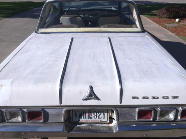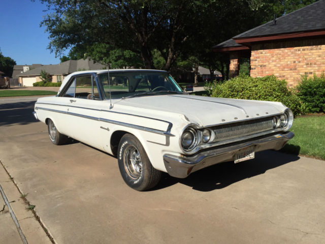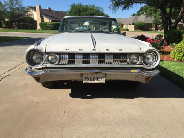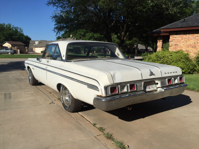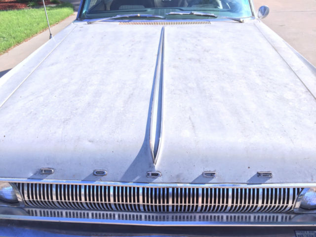 Rare 1964 50th anniversary Dodge Polara 500. 383 cu. in. 4 barrel 330hp. 4 speed manual with original Hurst shifter. 3.23 Sure Grip posi rear end. 2 1/2 inch dual exaust. Mallory dual point ignition. Bucket seats & console. This car is a great example of a complete unrestored early Mopar muscle car that I have owned since 1982. It was a daily driver in nice weather before being stored in 1997. I got a job transfer and decided not to take the car north with me so now is your chance to own a piece of automotive history. The engine recently started right up and is running strong. What sounds like a slight exhaust tick could likely be fixed with a new gasket. The tires are old and show dry cracking. The seats are dry and splitting. The paint is old and fading. Take a good look at all of the pictures. I tried to show all of the options and flaws. This car is not quite ready for a long drive but with a little cleaning and servicing it can be a daily driver again. A little investment in paint and interior and this could be a great car worth double what I'm asking for it here. This is a really fun car to drive. The engine pulls very strong and the transmission was always tight. I also have lots of extra parts including a transmission, interior parts, and engine parts. This car is complete. It's not someone else's half finished restoration. These big block 4 speed Polara 500s are hard to find. It's your chance to drive something different.