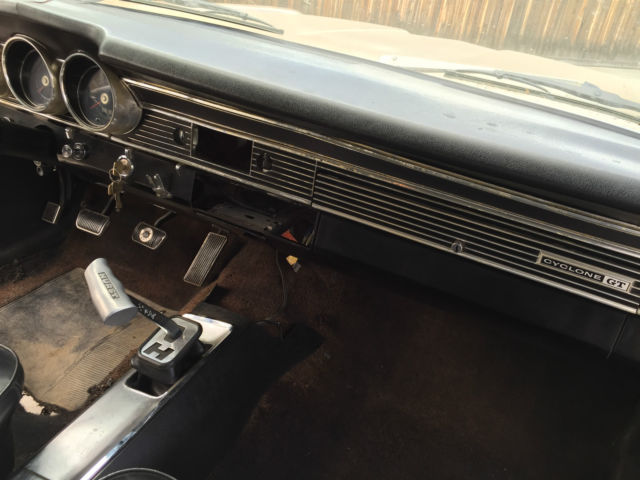 1967 Mercury Cyclone GT, so this is an "S" VIN coded car with the GT group and a 390 cubic inch engine. 4 speed transmission with a Hurst Competition Plus Shifter and Hayes Street Clutch installed, along with a steel/scatter shield bell housing. Original bell housing is included. 9 inch posi-traction differential. Starts and runs excellent. Extensive receipts are included that show the engine was rebuilt back in 1980, with the usual valves, rings, pistons, re-bore and balance, etc. Little work has been completed since then, as it wasn't driven extensively. Brakes need replaced or updated, as at least one front caliper piston appears to be seized. Cyclone is test drive-able, but the brakes need immediate attention. See the photos for many of the features and issues, including very good vinyl top and headliner. Flaws include rust in the driver's floor and some other under body rust and lower rear quarter and fender rust. Tears in the upholstery and crack in the dash. No radio/stereo included. Heater hoses to heater core diverted, so assume the heater core needs replaced. Some rear window trim clips need installed and possibly other minor fixes are needed. Carpets are deteriorated. Original spare tire is included, as well as extra gaskets and other misc. parts, and the original bell housing mentioned. Aftermarket/vintage air conditioning system was installed at one time, and the A/C pump and condenser are not installed but included. Inspection is available and encouraged in metro Denver, and please inquire with any questions. Shipping is the responsibility of buyer, but local delivery to a carrier may be possible. Thanks for looking.