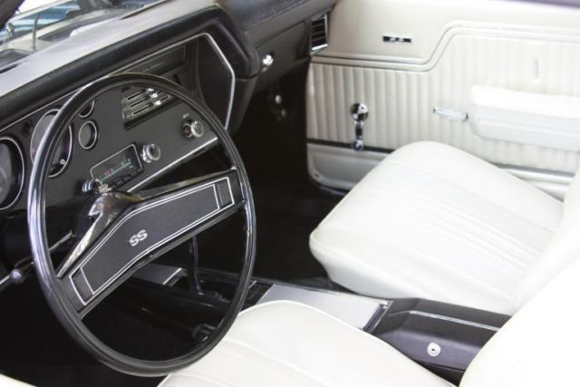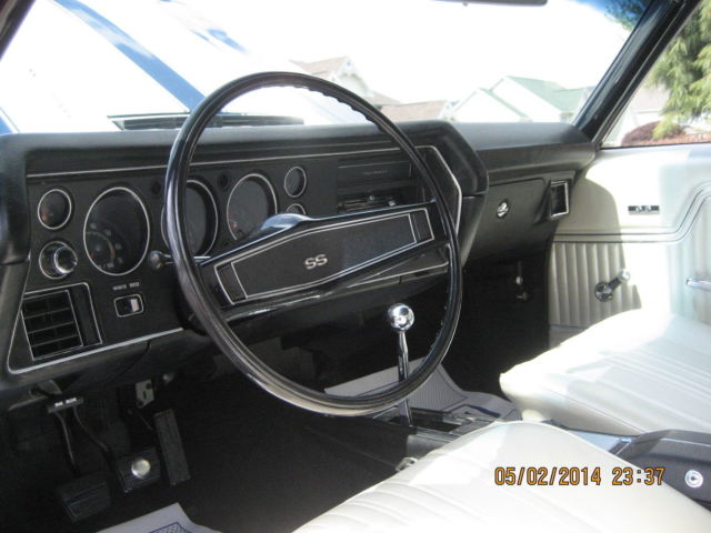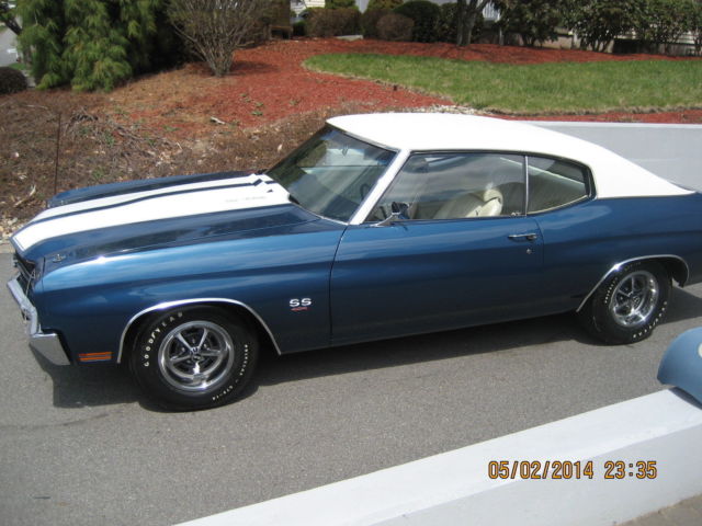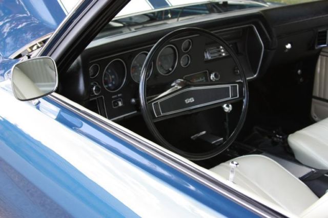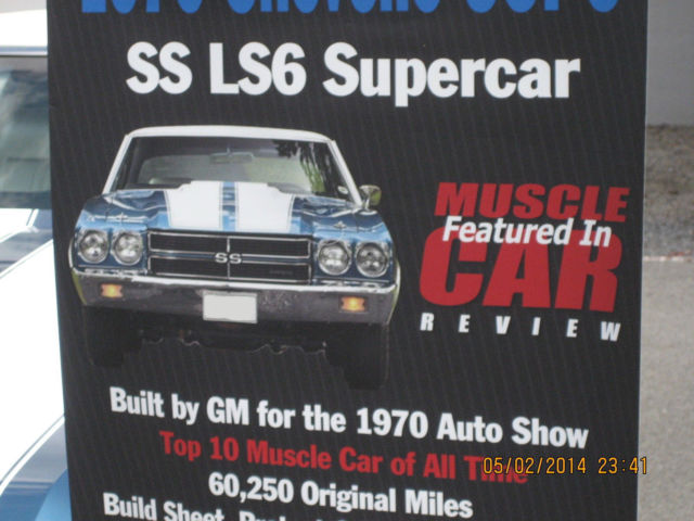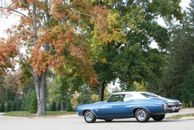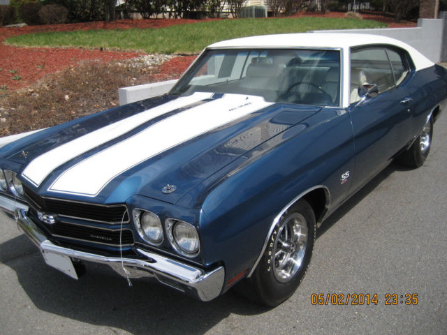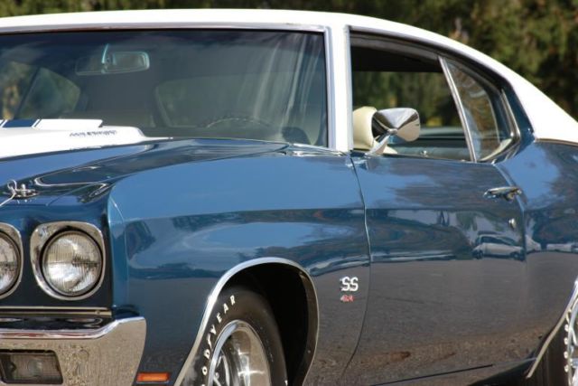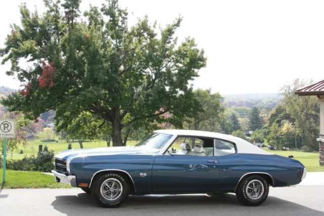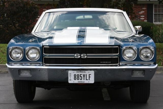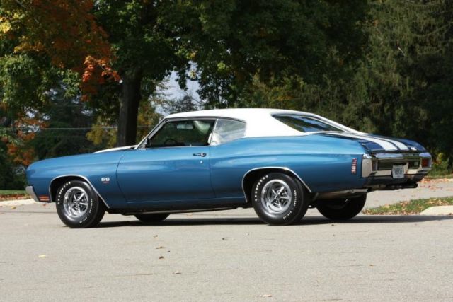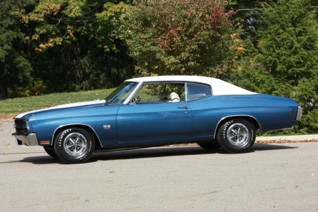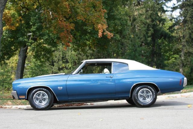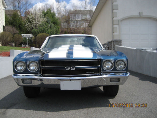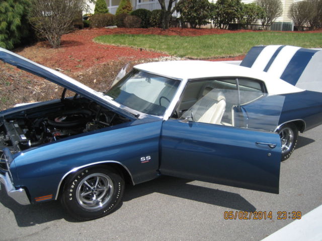 Featured here on eBay Motors is an outstanding 1970 Chevelle SS396 L78 375HP. This beauty comes with POP, Rare build sheet, and owner history. This car is the L78 that was built by GM for display at the 1970 Cincinnati Autorama, as depicted on build sheet. It was also at one time believed to be a COPO, however there is no proof. The car was recovered from a barn in 2010 where it had been stored since 1975, it was then treated to a 3-year professional nut and bolt restoration that was close to six-figures in cost. The original engine was missing so it was upgraded to a date and numbers correct LS6 454-/450HP engine. Unfortunately life has thrown me a curve so this baby is being sold fresh out of my private collection where it has been stored in a climate controlled environment. With an Arrow straight body and beautiful paint polished to show standards, this classic has won top awards at every event it has attended, a true trailer queen! It is finished in the original factory code 28 Fathom blue with white stripes and white bucket seat interior and top. Features: power steering, power disc brakes, functional cowl induction hood, factory 6500 tachometer, gauges, factory dual exhaust with correct chrome tips, and 14x7 SS rally wheels with Goodyear Polyglas tires. F41 suspension, M21 4-speed manual transmission, F41 suspension with12-bolt posi-traction and correct 4.10 rear axle. This baby runs, drives, shifts, and looks spectacular! Excellent throughout - all gauges, electrical, and lights work as new including the cowl induction hood. Inspections are welcome. This is a very nice car and priced to sell! If you have any questions about this car contact me via e-mail or by phone at (315)-290-2097. Thank you for your interest and I look forward to hearing from you. Listed below are some of the specifics of the car. VIN info in ad is not correct, it will be shared with serious buyers. Series Model 13637 Sequence Num: K1159xx Exterior Color: 28A Interior Color: 791 Body Date: 10B Body Number: 183040 Transmission: M21 Rear End: 4.10 Sched. No Date: 07 -10-69 Factory: Kansas City Dealer: Queen City, Cincinnati Block Suffix TO616CRV True LS6 Block Casting: 3963512 Block VIN: 10K214741 Block Date: E 18 70 Heads Casting: 3964291 Heads Date: E 8 70, E 9 70 Pistons: L2349 .030 Intake: 3963569 1-7-70 Water Pump: 3969811 E 4 70 Exhaust Manifold: 3909879 Exhaust Manifold: 3916178 By the Numbers/Codes True LS6 Motor Original CKO 396/375 L78 Car, now with period correct documented CRV LS6 454/450. Kansas City built engine for a Kansas City built car. Original Low Mileage E 18 70 CRV Block with matching 3964291 Heads E 8 70 / E 9 70 Also included in car sale is a date correct GM CE code replacement 396/375 L78 Block w/std. bore and in nice shape. Car is registered in the L78 Registry. Comes with all receipts and documented restoration pics/videos $500 California custom car cover Car is being sold "AS-IS-WHERE-IS WITH NO WARRANTY OR GUARANTEES EXPRESSED OR IMPLIED" Please call to make appointments for inspections