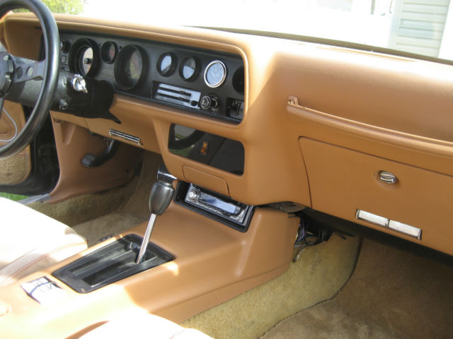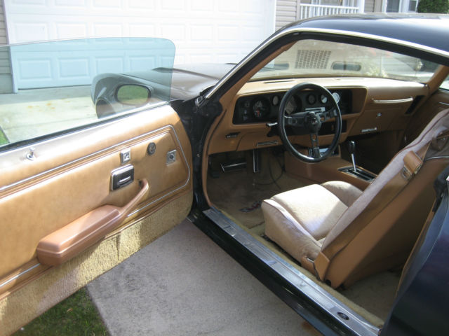 Nice running 455 Pontiac engine with a 3 speed turbo 400 transmission ( shifts very smooth), both are definitely not original but are very fast. Tires are BF Goodrich and are like new, brakes are all in good condition. Exhaust pipes are dual exhaust out the side of the car. There is some rust and bondo repair on the driver's side rear quarter panel and a little rust under the left of the rear windshield. There is a small dent on the passenger door and right rear quarter panel, after all it is a 37 yr. old car. I've tried to show all damage in the photo's. Interior is cloth and is in nice condition with no rips or tears. Does have power windows and power door locks. The radio is an after market JVC with a CD player. The clock has been removed. The A/C compressor and hoses were removed by the previous owner but can be purchased and reinstalled. No cracks on dash but the interior mirror is off. I am selling this car for my son who moved away. I would love to see someone enjoy this car as much as he did.