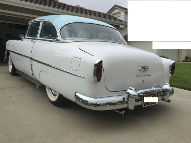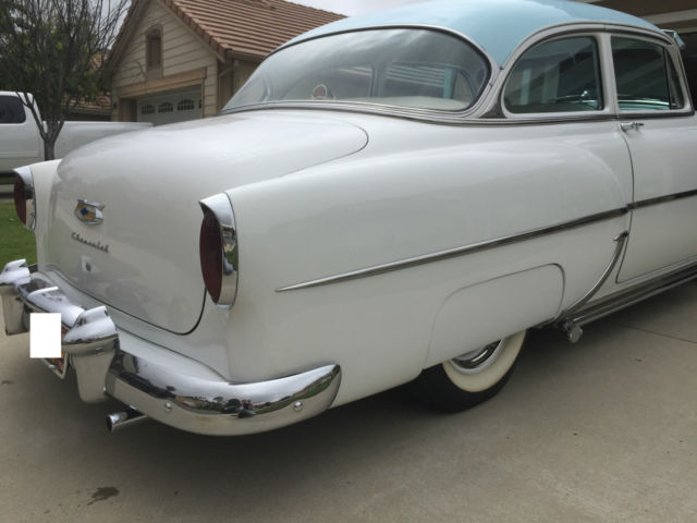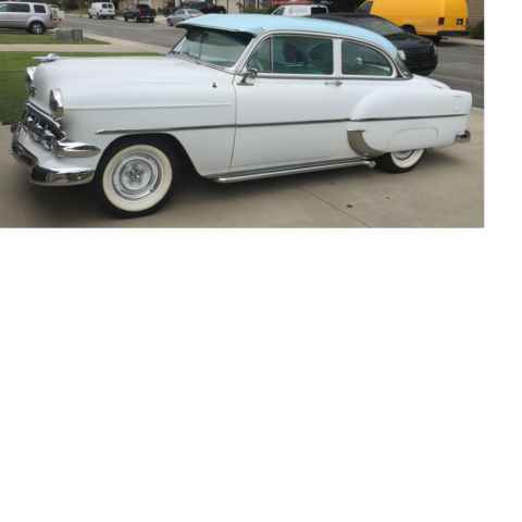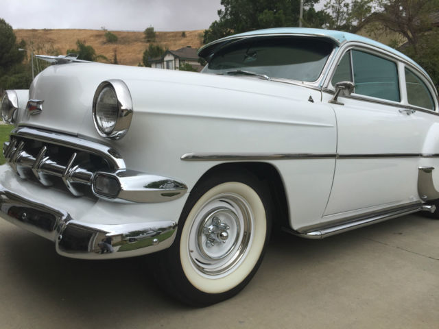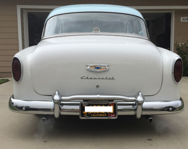 1954 CHEVROLET 210 2 DOOR .....THIS CAR IS A AWESOME SURVIVOR !!!! ALL ORIGINAL ( EXCEPT PAINT AND INTERIOR ) 235 ENGINE WITH 3 ON THE TREE 3-SPEED TRANSMISSION, STILL 6 VOLT WITH BRAND NEW OPTIMA BATTERY WITH BILLET HOLDER IN BATTERY TRAY. PAINT WAS DONE ABOUT 3 YEARS AGO NOT PERFECT BUT REALLY GOOD LOOKING AS YOU CAN SEE FROM PICTURES . INTERIOR JUST DONE LAST YEAR ALL WHITE DIAMOND TUCK WITH DARK BLUE TRIM TO MATCH CARPET. EVERYTHING ON THIS CAR WAS RECHROMED !!!! INCLUDING BUMPERS ALL DASH , ALL INTERIOR TRIM. THE SIDE MOLDINGS AND FENDER GUARDS ARE ORIGINAL STAINLESS SO NOT RE-CHROMED . BRAND NEW FRESHLY POWDERED COAT WHEEL VINTIQUES WITH ALL SPIDER CAPS AND TRIMS LOWERED IN THE BACK WITH BLOCKS AND BRAND NEW AIR SHOCKS!! THIS CAR DRIVES AND RUNS GREAT ....STRONG 235 !!! MOTOR REBUILT A COUPLE YEARS AGO!! ORGINAL 1954 BIG BLACK AND YELLOW PLATES W/ 54 RED TAG CURRENTLY REGISTERED IN CALIFORNIA EVERYTHING ON CAR FUNCTIONS....ROLL DOWN QUARTER WINDOWS ....DOME LIGHT.....ALL LIGHTING WORKS CORRECTLY...DEFROSTER....RADIO..... NEW ITEMS ALSO INCLUDED WITH SALE .... ALL ITEMS BRAND NEW IN BOX... KANTER COMPLETE FRONTEND REBUILD KIT JAMCO 3 INCH FRONT DROP SPRINGS AND BILSTEIN FRONT SHOCKS WALTON V8 MOTOR MOUNTS AND TRANSMISSION MOUNT KIT COMPLETE TO UPGRADE TO A V8!!! waltonfabrication.com THATS OVER $1500 IN PARTS FOR THIS CAR BRAND NEW IN BOX