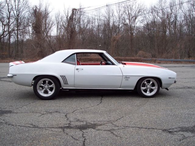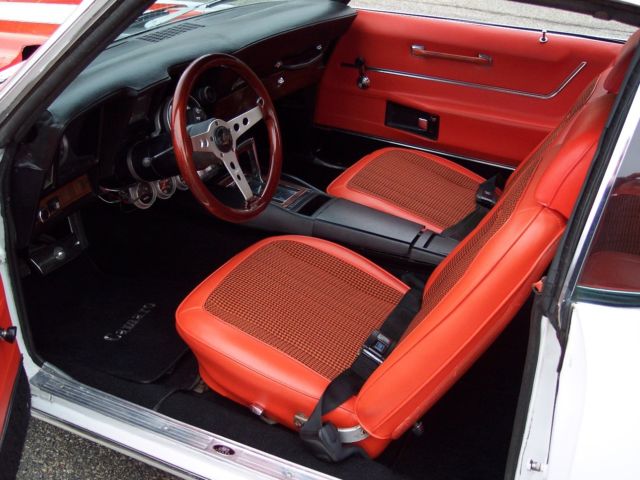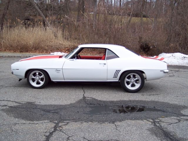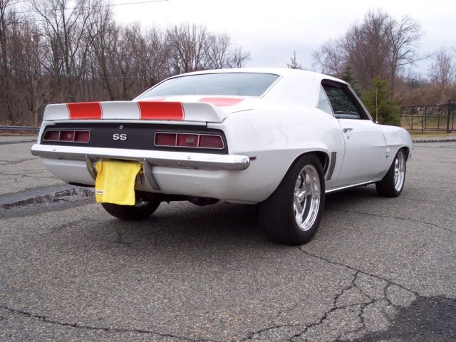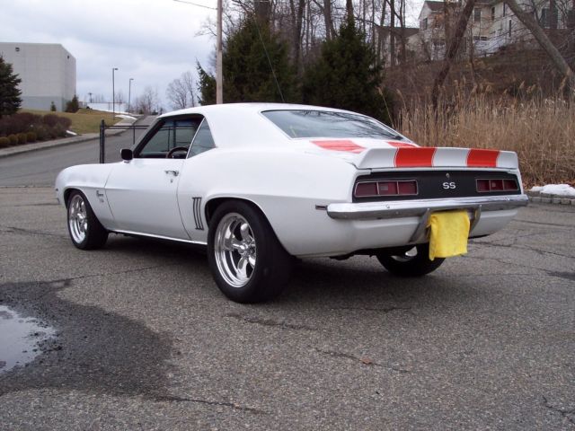 This car is being relisted do to a non paying ebayer.Please make sure you have enough money to pay for this Camaro before making a offer.Any questions or you would like to make me a reasonable offer please email or call 973-476-5173.This is a real SS396 Camaro X22 with a seldom seen color combo, dover white (paint code 50) with a orange hounds tooth interior(trim code 720) see picture of cowl tag. This car still retains a lot of its SS equipment as follows: duel exhaust bracket,front disc brakes,hold off valve by the master cylinder,texas valve under the car on subframe,brake hose retainers on upper control arms,factory tach with console gauges,factory spoiler car and its a factory cowl hood car with the original grommet still present above fuse box. The car is stock appearing except for the 17 inch torque thrust wheels but the drivetrain is modified to be a hot street car or weekend warrior. Early 70s 454 pump gas motor,forged bottom end,edelbrock performer rpm aluminum heads,aggressive solid cam,roller rockers,holley strip dominator intake,holley 4150 carb,moroso valve covers,hooker headers into flowmasters with turn downs(loud),msd 7al,msd billet distributor,msd pro power coil,barry grant 280 fuel pump with filter,barry grant fuel pressure regulator,polished fuel cell (car comes with stock tank that could be put back in if you wanted to) CSR water pump with march front runner serp belt setup,custom oversized aluminum radiator with duel electric fans,updated alternator,turbo 400 trans with stall converter,reverse manual valve body,heavy duty aluminum driveshaft,373 posi rear.It has 17 inch radial tires in front and 17 inch Mickey Thompson ET street tires in the rear. Nothing but quality parts were used on this build! The body has a older driver quality repaint,dover white with orange Z stripes.It resembles a Z10 pace car.Paint still shines but has a few chips and pops from being driven. Great cruse night car! The floors,front sub frame,rear frame rails and rockers are rock solid.Has small hole cut in trunk for fuel cell,see picture. The interior is in nice shape,seats were recovered,newer door panels,deluxe wood grain dash,aftermarket steering wheel and gauges. All lights work and the wipers are inop.Good sounding aftermarket radio with amp.The gas gauge works also.The windshield is cracked on the passenger side. Tons of money was poured into this build, You are getting a Real X22 SS396 car with a aluminum headed 454.This car is fast!This car is loud!This car is REAL!! ANY QUESTIONS OR IF YOU WANT TO SEE THIS CAR IN PERSON, PLEASE EMAIL OR CALL 973-476-5173