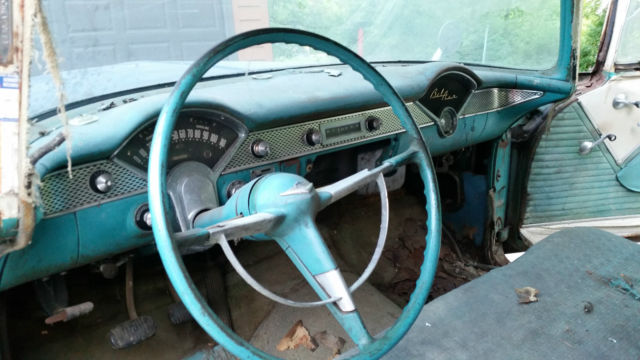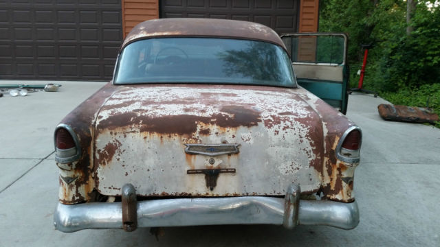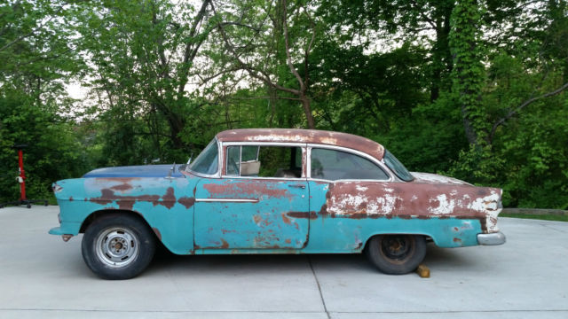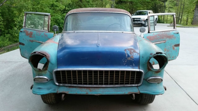 1955 Chevrolet Bel Air.   The car is mostly there but very rusty.   It still has the original   265 and   three speed transmission in it although I have never tried to get it started.   The driveshaft and rear end are there not sure what gear ratio.   The original radiator is there as well.   The doors are pretty rusty in the bottoms and just forward of the windows (could be repaired but it would take a lot of work) deck lid is no good. The floor pans are rusty and the back of the trunk pan where the deck lid meets it is also rusty.   The frame appears to be in good condition.   The front fenders are in good condition except for typical rust above the headlights.   The quarter panes have some rust in front of the wheel openings but could be patched the roof is good.   The hood has been swapped at some time and is solid but has some dents (very repairable).   All the interior seems to be there (even the original radio) although someone has removed some of the trim and one door panel (it is all there though). All of the Bel Air chrome for the side glass is there and in very good condition.   The car has factory tinted glass but the driver side door glass is broken.   I do have a front bumper and brackets for the car.   The car has a clear Tennessee title odometer shows 61042 I was told that was original mileage when I bought the car but have no way of confirming that. I have owned and kept the car in the dry for 12 years but the damage was done before I owned it.   I had intentions of repairing the car and selling it but I need the room more than another project.  Car is located in Loudon Tennessee.