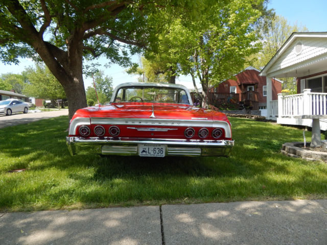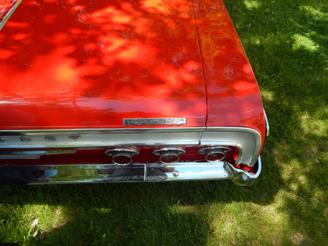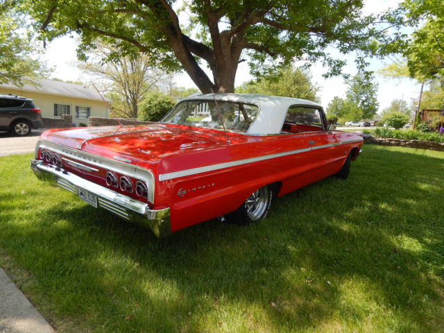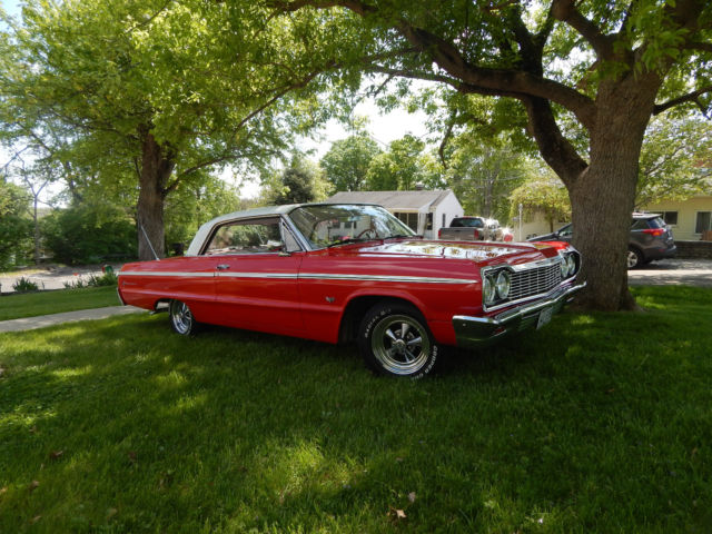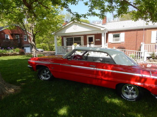 Up for auction is a 1964 Chevrolet Impala SS Engine: 283 CID Carb: Eldebrock Transmission: 2 Speed Powerglide This car does have upgraded 15â Crager 5 Spoke Rims and Tires, but also comes with the original SS hubcaps. This car has been repainted in Viper Red, but retains the original White Hard Top: http://www.ppgpaintit.com/Collision.aspx?Year=2010&Brand=PPGNA This car runs strong. Starts right up and is tastefully loud. I have upgraded the front brakes with a disc conversion from Summit Racing: http://www.summitracing.com/parts/sum-bk1215/overview/make/chevrolet/model/impala Car has all the original emblems. Headliner is in good shape. Car is solid needs no body work floors are solid. This is a good car, and could be a nice show car with a little TLC. It has the original interior from 1964. If you need any other pictures taken just ask. I have the right to remove this listing at any time because it is advertised to be sold locally also. Car is located in Northern, KY with a clean KY Title in hand. Easy Pickup off Exit 79 I-275, Taylor Mill , KY 41015 . I will NOT ship but I will work with your shipping company. At the close of the auction, I require a $500 NON-REFUNDABLE deposit within 48 hours . The deposit will hold the car for 10 days. The deposit is non refundable if you back out of the deal. PayPal for deposit only, which is due within 48 hours of the end of the auction, no exceptions. Remaining balance to be paid by Bank wire transfer, cash in person, or cashiers check. If you have any questions, message me before bidding.