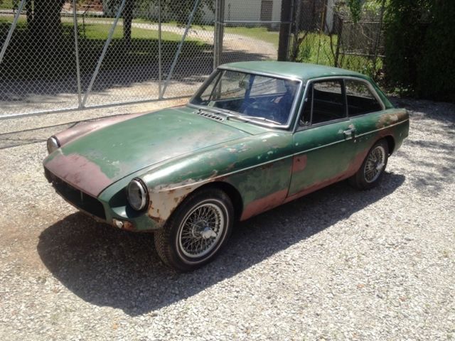 *** You need to check with your state's DMV and make sure you can obtain a title for this vehicle PRIOR to placing a bid. Alabama law does not require titles for vehicles 35+ years old therefore it will come with a bill of sale and the title from the previous owner. *** *** There is a slideshow with more detailed pics at the bottom of the auction. *** 1967 MGB GT. 1st year of North American release. British Racing Green with black interior and optional chrome wire wheels. Manual gearbox. (Checking to see if its OD now. Check back.) Restoration was started but never finished. It will not take much to finish this car. The car is complete and comes with over $1000+ of extra MG parts to complete this car and possibly another you might have. If you are an MG enthusiast or looking for a quick restoration project then this is the car for you. I will consider any serious offer which takes into account the value of the car AND the parts. The body on the car is straight with no dents. There is some rust in the usual places. The bottom of a door, an outer wheel well, a small hole in the bottom of drivers side fender (see the pics). Its not very much and can be repaired pretty quickly. Then its ready for paint. The engine is NOT original. Its an 18V659M engine from an early 70s MG (better performance). But it looks like it will fire up once the breathers are put on and the radiator and gas lines are connected. The interior is all there. The seats and door panels are in OK condition and just need a thorough cleaning. It could use new carpet and a dash pad. The gauges will have to be cleaned up, etc. This car comes with tons of extra MG parts to complete the restoration and possibly another car: Front windshield to replace the cracked one New front and rear windshield weatherstripping Original chrome wire wheel (the spare is on the car now) Another dented wire wheel (unusable) with extra spokes if needed The grille for the car The original bumpers and a spare front bumper All the trim and lights for the car 3 front valances (the light blue one is the one to use) The original breathers The radiator An extra MG engine head (maybe the original?) Extra dual carburetors with intake and breathers An alternator Extra starters An extra cam Water pump Crank pulleys Other misc parts This will be a beautiful car when its restored. I have included some pics of a restored car in the slideshow below. DECODING: VIN: GHD3L120672 = MG BMC B-Series Engine 1.8L MGB GT MK1 1962-67 LHD SN:120672