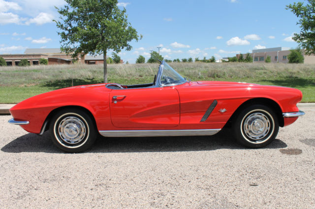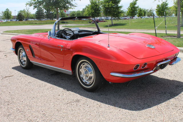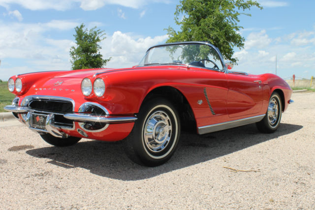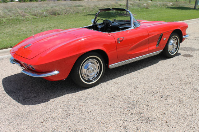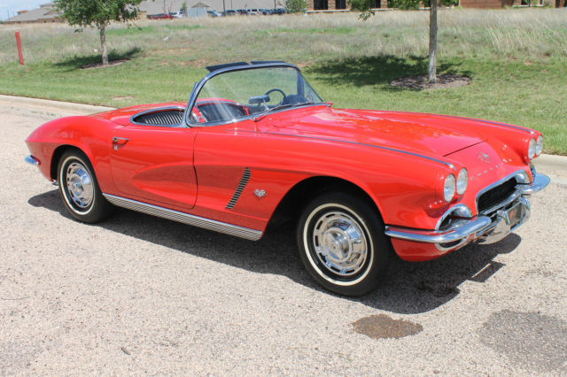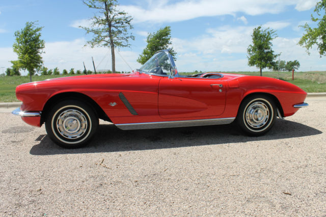 1962 CHEVROLET CORVETTE Vintage Autohaus & Imports is proud to offer this 1962 Corvette 340hp. This car was a great candidate for the profession body off restoration given to it. The body is accident free with all bonding strips intact. The engine is its vin matched code RE 327ci/340hp block. The head casting numbers are 3782461 and are correct for the 340 horse engine. The carb is a Carter AFB list #3269S and has been rebuilt. The WD code 4 speed transmission is 62 correct and shifts excellent. The rear axle is a 3.36 and pulls very well. The body of the car is very solid with no repairs or patches. The Roman Red paint is deep and in high gloss. All of the chrome and bright-work has been redone or is new. The interior is in great condition. The car comes with a hardtop. All of the gauges are in working order with the original wonder bar radio working. This is a wonderfully restored car with âTHE LOOKâ. We invite independent inspections and look at all trades. WE ACCEPT TRADES For more information and photos please visit http://www.vaitx.com or call Vintage Autohaus & Imports at 806-359-9600. This vehicle is being advertised locally, we reserve the right to remove the listing at any time. We will accept trades. ZERO FEEDBACK OR NEWLY SIGNED UP BIDDERS MUST CONTACT US FIRST. DISCLAIMER This vehicle is being sold as is, where is with no warranty, expressed written or implied. No allowance or set aside will be made on account of any incorrectness, imperfection, defect or damage. Any descriptions or representations are for identification purposes only and are not to be construed as a warranty of any type. It is the responsibility of the buyer to have thoroughly inspected the vehicle, and to have satisfied himself or herself as to the condition and value and to purchase based upon that judgement solely. The seller shall and will make every reasonable effort to disclose any known defects associated with this vehicle at the buyer's request prior to the close of sale. Seller assumes no responsibility for any repairs regardless of any oral statements about the vehicle.