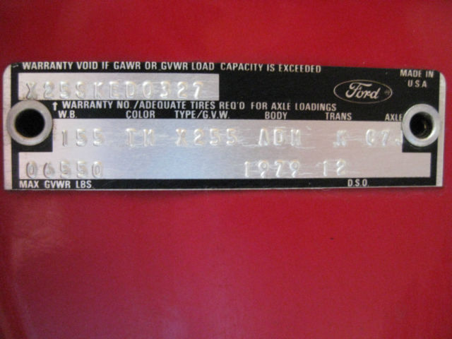 HELLO, I AM SELLING MY 1979 FORD F250 SUPERCAB CAMPER SPECIAL WITH ONLY 3,650.- ORIGINAL MILES ON IT. LET ME BE CLEAR, THIS TRUCK HAS 3,650.- ORIGINAL MILES ON IT. THE ODOMETER HAS NOT REACHED 99,999 AND TURNED OVER TO START AGAIN. I AM THE SECOND OWNER OF THIS TRUCK. THE ORIGINAL OWNER ONLY USED THIS TRUCK IN THE SUMMER MONTHS ON NICE WEEKENDS TO TOW HIS CAMPER AROUND IN WESTERN NEW YORK. HE HAD 2 OTHER CARS SO HE ONLY USED THIS TRUCK TO GO CAMPING, THAT'S THE ONLY TIME HE USED IT. HE HAD THE TRUCK ZIEBART RUSTPROOFED WHEN IT WAS NEW SO THERE IS NO RUST ON THIS TRUCK. THE PAINT, GLASS, INTERIOR, TRIM WORK, ENGINE, TRANSMISSION, REAR AXLE, BRAKES AND EVEN THE TIRES ARE ALL ORIGINAL AND IN EXCELLENT CONDITION!!! THE TRUCK IS THE SUPERCAB SO IT HAS A BACK SEAT AND AN 8 FOOT BED. THE TRUCK HAS AUTOMATIC TRANS., POWER STEERING AND BRAKES AND A KRACO AM-FM 8 TRACK PLAYER. THE TIRES ARE THE ORIGINAL FIRESTONE TRANSPORT 500 BIAS PLY IN EXCELLENT CONDITION. THE SPARE IS A MATCHING TRANSPORT 500 TIRE BRAND NEW, NEVER USED WITH THE WHITE MODEL NUMBERS STILL STENCILED ON THE TREADS!!!! THE TRUCK HAS THE ORIGINAL MOTORCRAFT WHITE FIBERGLASS TRUCK BED SHELL ON IT. THE ONLY PARTS THAT HAVE BEEN REPLACED ON THIS TRUCK ARE THE BATTERY, OIL, OIL FILTER, RADIATOR AND BRAKE FLUIDS, THAT'S IT !!!!!!!!!!!!!!! IF YOU WANT A TIME CAPSULE TRUCK FOR YOUR COLLECTION, THIS IS IT, THERE IS NO BETTER !!!!!!!!!!!!!!!!!!!! PAYMENT IS BY WIRE TRANSFER ONLY AND I RESERVE THE RIGHT TO END THE AUCTION AT ANY TIME BECAUSE THIS TRUCK IS ALSO FOR SALE LOCALLY. PLEASE CALL ME AT 716-418-6307 IF YOU NEED MORE INFORMATION. THIS IS NO JOKE OR SCAM, IF YOU SEE THIS TRUCK YOU WILL BE AMAZED !!!!!!!