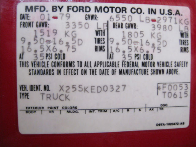 | VIN (Vehicle Identification Number): | X25SKEDO327 | Year: | 1979 |