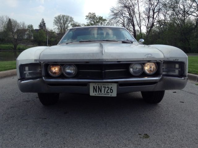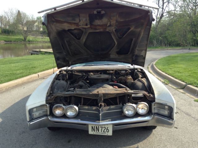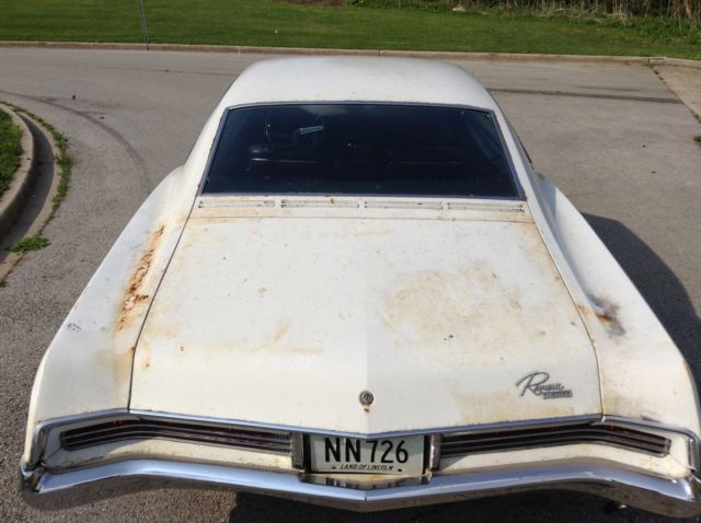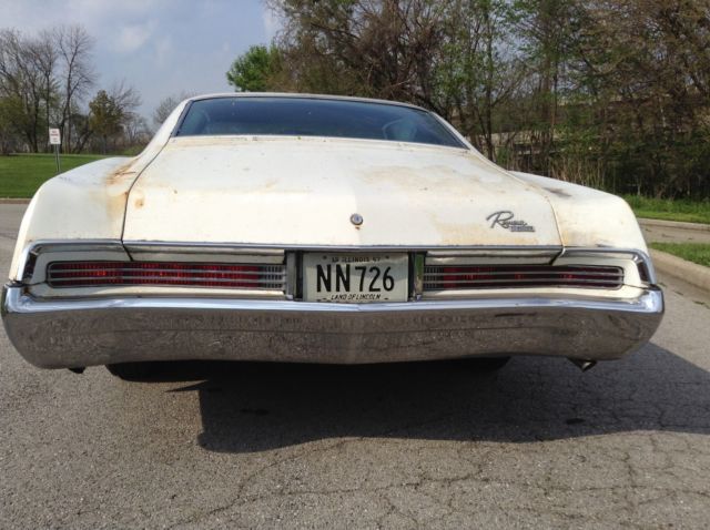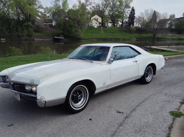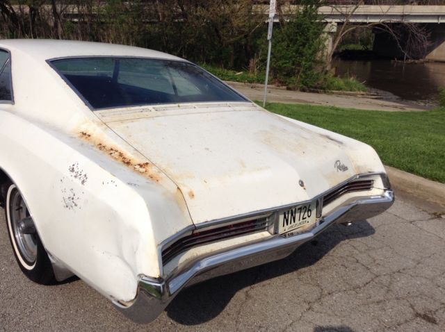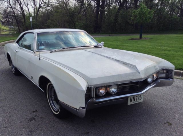 Several years ago, I bought this vehicle from the daughter and son-in-law of the original owner. It was sitting in a barn on 4 flat tires, covered in pigeon crap and a layer of dust. At the time, I didn't even hear it run because the battery was dead. With the help of a buddy, we got it on a trailer and towed it home. Once home, I rinsed off years of dirt, to discover it needed a paint job. It has "patina" (lol) I put fresh gas in it. I replaced the spark plugs, wires, distributor, rotor, points, etc. I changed the oil, coolant/radiator hoses, and transmission fluid. Finally, I charged the battery, and inflated the tires. With much anticipation, I turned the key, and it started right up. It was loud as hell, and there was an exhaust manifold leak. Since this was beyond my skill set, I took it to a shop, where they replaced the left exhaust manifold, exhaust manifold gasket, head gasket and intake gasket. In addition, they adjusted the (4) wheel drum brakes. After driving it, as-is for several years, last fall I had a new dual exhaust system installed. This spring I put a new battery in it, and it fired right up after sitting all winter. The GOOD: Trim and Bumpers are in nice shape. The Factory GM Rims look nice. Factory AM/FM Radio works.Trunk looks solid. The glass is good. The interior looks nice, however there is a split in the drivers seat cushion. Power seats and front windows work. Original AM/FM Radio works. Cool speedometer still works. Tilt steering wheel. The BAD: Needs body work and paint job, has dent in left rear fender, and small crease in front right fender. A/C not working, never used it. Retractable headlights not working, the electric motor is unplugged. Power antenna not working. Rear 1/4 windows not working. Not sure if this is a "matching numbers" engine. It is a Buick 430 CI Wildcat, just not sure if it is original! To reiterate..it has a faint odor of "mice urine" which becomes more noticeable, when the windows are closed and the car has been in a hot garage. That's why the carpets should be removed and properly cleaned, or replaced. If Buy it now is used, or a reasonable offer is tendered, I'll include all the Factory GM manuals I have, as well as sales brochure, and laminated wiring diagram, and Riviera Owners Association Magazines. This is a nice car, it is almost 50 years old, but it is still nicer then some of the basket cases or parts cars that still want my asking price!