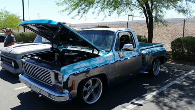1974 Chevy C10 Short Bed Step Side Hot Rod, Rat Rod, Bare Metal Bandit I am in Las Vegas, Nevada, and my mechanic found the add on Craigslist for this 74 Chevy C10 in Henderson. It had been sitting in the fellas back yard for 7 years. Year 8 he spent rebuilding and BUILDING the 350 and switching from the 350 automatic transmission to the 400. I bought i t to build into what it is now, to sell. Most everything is new, recently Built 350 Motor, 400 Tranny, with about 2000 miles on the motor. The paint job is a unique custom combination of patina (white & turquoise) and bare metal with 2 coats of clear. CPP Tubular Coil Suspension front and back. Racing Sway Bars front & back. This 1974 Chevy C10 handles like a racecar! New front fenders, new functional Cowl Hood, New Hood Hinges, New Custom Headlights, Custom Grill. New Windshield and New One Piece Rear Window. New Tires and Wheels, AEV Rev Wheels Classic 100 Series. 20"x 8.5" in front, 20"x 9.5" rear. March Serpentine System, New Aluminum Radiator with Dual Electric Fans. Longtube Ceramic Chrome Headers, 3" Exhaust from headers back through Magna Flow Mufflers to 4" x 12" Chrome tips, Holly 750 Dual Pumper with Chrome Rails and Braided Line to Upgraded fuel pump, Thumper Comp Cam, MSD Distributor. New interior, wire brushed and sanded (no rust), floor with three coats of black Rustoleum, rest of the cab in white with clear coat, DynaMatt type Matting with New Carpet, New Interior light, custom cut 1 x 6 Oak on floor in back of Corbeau Racing Seats, with Comfortable Easy to get into and out of 4 Point Harness/Seat Belts, New Oak Wood Bed, Corbeau Racing Seats, Custom Old School Wood Steering Wheel, Alpine Stereo, Dakota Digital VHX Instruments/Gauges , Air Conditioning, and much more...=) Frame sandblasted and painted. With the New CPP Coil rear-end, the leaf springs were removed along with unneeded brackets, the frame has a clean look. Non-Smoker Dakota Digital VHX Instruments ~ Custom Gauges ~ Photo below. Fully lit needles, backlit faces, and two highly visible LCD message centers are a few of the things that you can see which set the VHX Series apart from yesterday's traditional approach to instrumentation. A few of the features which you don't normally see are the micro-controlled precision stepper motors, solid state sensors for unparalleled accuracy, and user-customizable display feedback, all supported by an unrivaled limited lifetime warranty which has become the standard for Dakota Digital instrumentation systems . Completely engineered and manufactured at our facility in Sioux Falls, South Dakota, the VHX Series has completely revolutionized the instrumentation industry! This is a 40+-year-old vehicle, sold as is, and no warranty. For a fee can arrange delivery up to 500 miles, above that buyer will want to make arrangements. Serious inquiries only! Questions: Call me, Greg at 702-979-0603