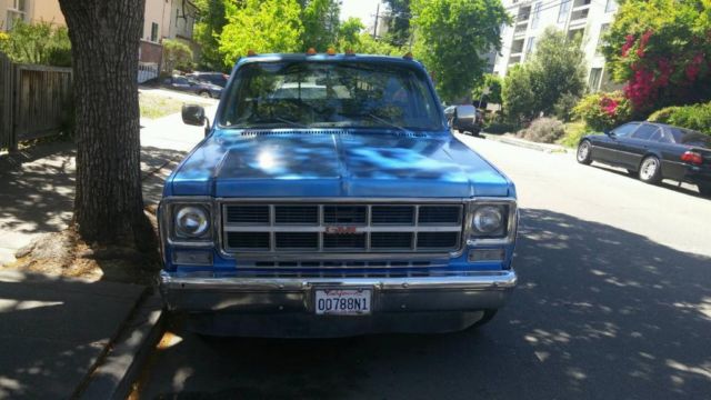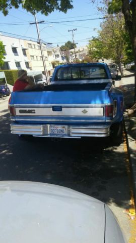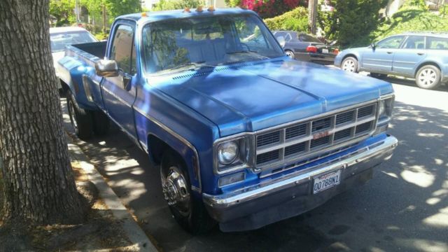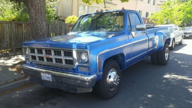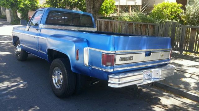 1977 GMC CAMPER SPECIAL DUALLY 454 1TON: This truck runs and drives excellent. It has113,000 original miles.It has a 454 ci. gas engine and a th400 automatic tranny. the transmission shifts smooth/properly. The truck is powerful,reliable,and quiet(stock exhaust) It has been painted recently,the color is "deep-blue". the body is in very good shape with no dents and almost no rust on the entire vehicle. a very small amount of rust was found on the underside of the hood and treated.The fiberglass rear fenders are also in great shape. The tires are in good shape with %80+ tread left.The 16 inch rims come with a brand new set of stainless steel wheel simulators.The truck has ac but it needs to be recharged. It also has power steering and cruise control. There are special brackets for a camper on the sides of the truckbed ,also some kind of shock absorbers on the inside of the bed probably for a camper too. The bed has been sprayed recently with a metallic blue super liner brand spray on bedliner that matches the paint nicely.the heavy steel bumper in the rear has a tow hitch receiver but does not come with a hitch or ball.The interior of the truck is in nice shape, the seat does have rips and tears but it is covered by a nice seat cover. The door panels and dash are in excellent condition,carpet could use a cleaning.Included is a jvc cd deck with remote control,auxiliary input and brand new 6x9 speakers mounted in the doors,it sounds good too! The truck has dual gas tanks. Included in the sale is a california pink slip/title the status of the title is salvaged. the previous owner told me the title is salvaged due to vandalism but he was able to fix everything. The truck was last registered september of last year and has about $300 in back fees due,although if you live outside of california some of these fees may not apply to you.The truck passed the last time it was smogged but i have not attempted to do it recently. heres a small list of minor repairs the truck will need -passengers side door only opens from the outside handle. -speedometer gauge needs to be replaced. -ac needs recharge I would consider this truck to be reliable and i would trust it to make a long trip. so flying into california from out of state and driving the truck home could definitely be an option for the buyer. otherwise buyer is responsible for pickup/shipping. Please feel free to message me through ebay with any questions you may have regarding the vehicle.