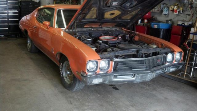 WELCOME TO LAKES! BEING SOLD AS IS Accepting Payments through Pay Pal and NO Shipping outside the USA 1972 Buick Skylark GS 455 CU IN Stage 1 / Collectors / Classic Car Issues: There are some chips in the paint (example: Please see pictures). There are indicators under the hood showing 455 CU IN Stage 1 I also have a picture of where the engine is marked 350. This marking is on the right back section of the engine. You have the remove the air cleaner in order to see it. (see pics) The vehicle is turn key ready and a must see / must drive. Runs nice and makes a great driver. I had the carburetor replaced. I have a picture of the old and the new carburetor now installed. Believe the Orange color is the original color and from what I've seen it's rare. These cars have been know to make great GTX clones! THE CAR RUNS GREAT! EXTERIOR OF VEHICLE: Paint: Orange. No body damage Chrome trim. INTERIOR The interior is cream/white. There's wear and tear to the interior from use. There are some tears in the upholstery (see pics) View all Pictures Carefully! Thanks for looking!