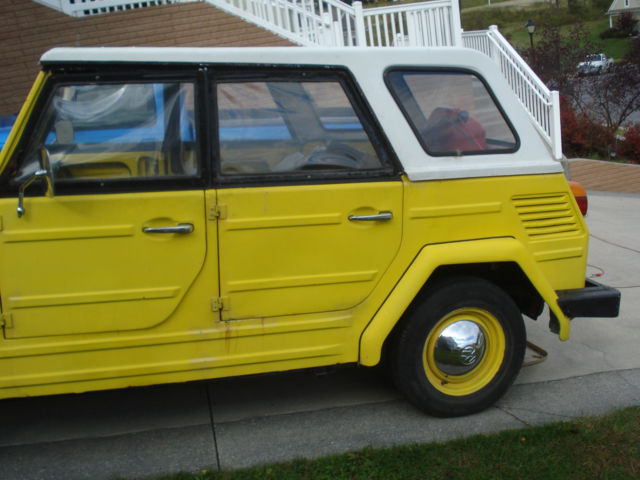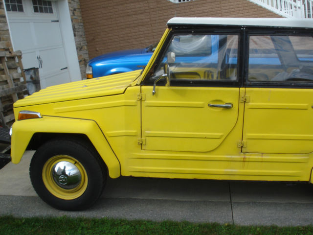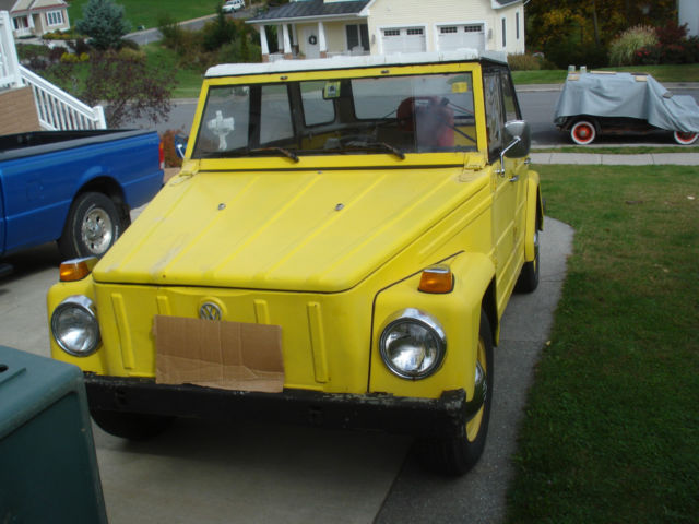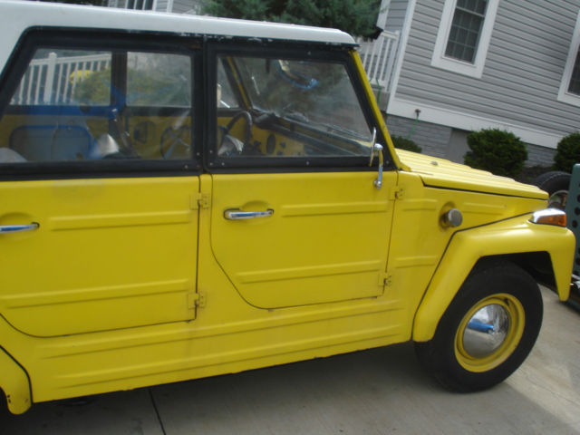 no rot. comes with 4 side curtains (windows). 4 original wood floor mats. car has no rot. old respray with touchups here and there. comes with fiberglass hard top and soft top mechanism (no soft top). german exhaust. original gas heater (untested, but ticks, so not DOA). spare wheel. one mounted new tire. 3 good used mounted tires. new brakes. engine rebuilt has less than 2k on it. original seats. needs headlight switch. hazards work. 2 front directional lights work. neither brake light works. neither reverse light works. neither tail light works. one rear directional light works. i only drove the car during the day, no never bothered with lights. wiper motor works. no rot in floor, rockers, trunk, etc. solid car. turns heads. 4 chrome hubcaps included with sale. key fits ignition. i never bothered keying or locking the doors. doors come off and windshield folds down! manual transmission. odometer does no reflect original mileage, but i have original speedometer that i took out of the car when i installed the good used one when engine was rebuilt. why am i selling? i owned this car nearly three years and enjoyed it. i have about 10 vw's so i have to thin out collection. this has been my only THING i have ever owned. i have the engine rebuilt and brakes redone! fresh valve adjustment and oil change. drips a few drops of oil when you park like most vw's.