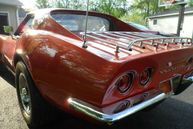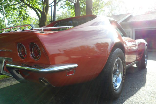 Hello, thanks for looking at my auction. For your consideration I have a restored, mint condition, 68 Corvette with a 427 #'s matching engine with a tri-pack painted to it's original Corvette Bronze. This vette is beautiful and the pix do not do it justice. The hide away headlights and wipers work great. I like buying old cars and driving them then buying something different. I am not a car mechanic but I love old school cars and I wish I had the space to keep all of them. I am presently looking for a 67-69 Camaro convertible or a 66 or 70 Chevelle convertible so that's why I am selling this baby. You can watch the video by clicking this link http://youtu.be/HfP01iXIqXE its worth watching. In the video a couple of small pollen fell from the tree onto the car, it is not a scratch If you love vettes this is the car for you. I was told by members of the Rochester Corvette club that this car was worth around 60-70K. I have the spare tire and the cover for the car also. The tri-pack manifold is a period correct , however, I have the original manifold with the carb mounted on it also which goes with the car.