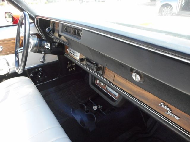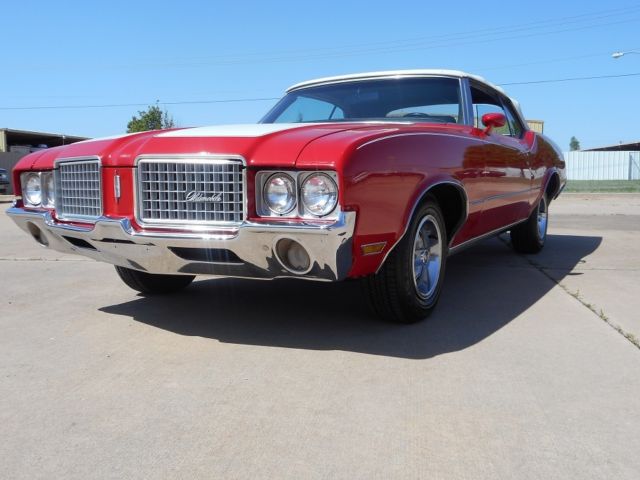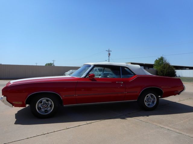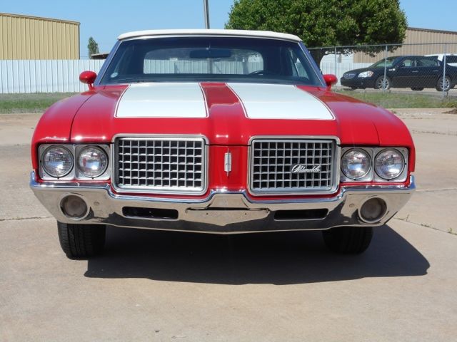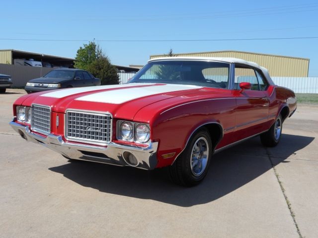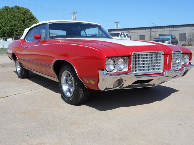 For Sale is a 1972 Oldsmobile Cutlass Convertible. This is a very nice DRIVER/SHOW car. It still has it's original Olds., 350 C.I. "Rocket", V8 engine(rebuilt). Has the optional Quadrajet 4-BBL carburetor. Engine has a newer HEI electronic distributor for better drivability. Automatic 3-speed transmission(rebuilt). Neither leak a drip of fluid!!. Factory A/C (new compressor), power steering, power brakes and power convertible top! VERY nice paint job but was done a few years ago. Convertible top in good condition but is also a few years old. NEW front seat cover & carpet was installed. The rest of the interior was in great shape. Everything works even the 8-track and speedometer. We installed a complete NEW Dual exhaust system from the exhaust manifolds to the rear bumper. Car was put on a outside lift and the entire under carriage was blasted clean. 2 dime size spots of rust in the rear inner wheel wells (not the body) were cut & patched. Then the entire under carriage was painted with a thin rubber under coat to protect it. Shocks were newer and were left alone. 4 NEW tires were installed & a front end alignment was performed. This car is an above average Driver but NOT a full show car!! It could be picked up and driven back to anywhere in the country. This cars are getting MUCH harder to find with their original Olds engines and make great investments!! LOOK AT MY FEEDBACK! PLEASE ask any questions before bidding. I will discuss the car with any SERIOUS buyer! Thanks, Jay