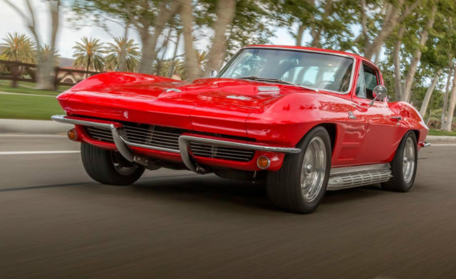 This classic 1964 Corvette coupe is a California car and has had a partial older body-on restoration. Exceptional single-stage urethane paintwork in correct Riverside red is holding up well with only a few minor blemishes (a few small areas of spider cracks, tiny nicks, two small chips, etc.). See last two photos. Paint rated a 9/10 ...