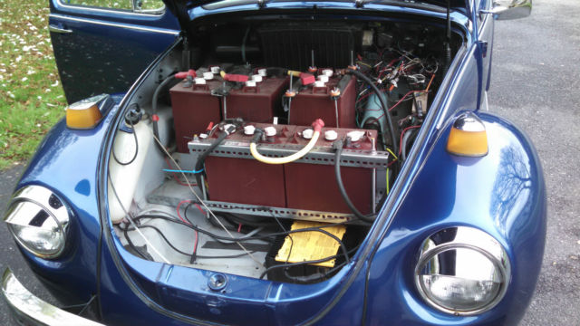 The interior is basic but in decent shape. It has the original steering wheel, complete with the Wolfsburg center cover. I've mounted an amp meter and volt meter in the dash. The radio is newer with an SD car reader and there are aftermarket speakers mounted into the foot well area. The sound is decent enough though nothing fancy. Of course there's no engine noise competing!The calculated range (done by EV America of New Hampshire) is 59 miles, but honestly I've only done 25 miles at most. A lot will depend on how hard you accelerate and whether your climbing hills. I use it around town, mostly to take the kids to soccer and for ice cream trips and the like. It sits in the garage during the winter. We have solar panels on the roof so it is 100% green at my house. The charger is a Delta Q: QuiQ model 912-7200.The controller is an Altrax 7245The motor is a D&D ES-15.I use a separate charger to top up the 12-volt system.I have a bin of miscellaneous parts and a notebook with lots of information, manuals, etc. included. There is a low reserve making this a bargain electric car to use as is, convert to Lithium Ion Batteries or even to reconvert with a new motor. I've had it about 5 years and it is fun to drive and a real conversation piece. Now I'm shopping for a Model T.Thanks for looking!