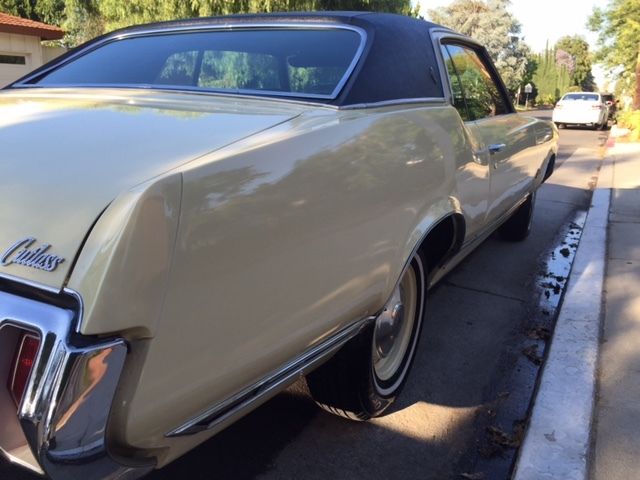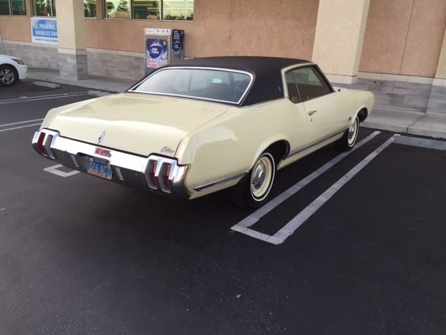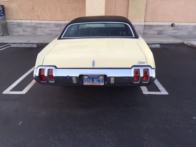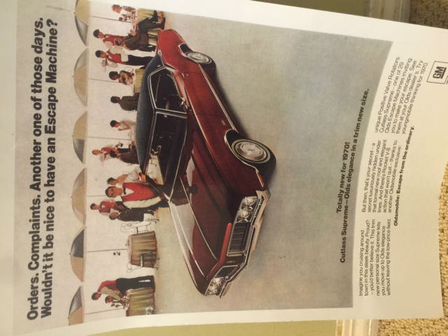 Bought from an Elderly Couple who could no longer drive. This Vehicle was first purchased and Kept its entire life in Canoga Park, California. They have owned this since new and was always kept inside their Garage. This 1970 Oldsmobile Cutlass Supreme Coupe, still has it's original 350 Rocket V8 ENGINE with it's Original AutomaticTransmission. This has only 136,000 original Miles since new and has Never been into an Accident, EVER. This 45 Year Old Beauty has no Rust anywhere and is Bone Dry because of the Southern California Weather. Paint is Fantastic and comes with a Black Vinyl Top which looks Brand New. It also has a Black Interior all Around also kept in Immaculate Condition. This comes with it's Original Factory Rims with Dog Dish Hub Caps. It Runs like a Dream and feels like Driving in 1970. Always appreciated by people who understand Nice Classic Cars who give a two thumbs up. You cannot find a nicer original Muscle Car, and as Dry and as Immaculate as this one, ANYWHERE. Whoever buys this should KEEP IT for future generations to enjoy.. RECENT SERVICE DONE DURING THE PAST TWO MONTHS; CHANGED TO AN ORIGINAL BRAND NEW CARBURETOR FOUR BRAND NEW WHITE WALL RADIAL TIRES ALL FOUR BRAKES CHANGED TO NEW ONES(booster,drums,reservoir, etc) ALL FOUR NEW SHOCK ABSORBERS MAJOR TUNE UP PERFORMED(with all new OEM Parts) Engine oil Flushed and replaced Automatic Transmission flushed and replaced/ Differential Oil flushed and Replaced All Major Suspension Replaced to New OEM parts Brand New Water Pump Brand New Radiator THIS OLD CLASSIC CAN EASILY BE TRANSFORMED INTO A " B E A S T "..........
