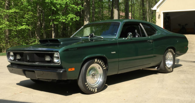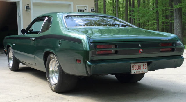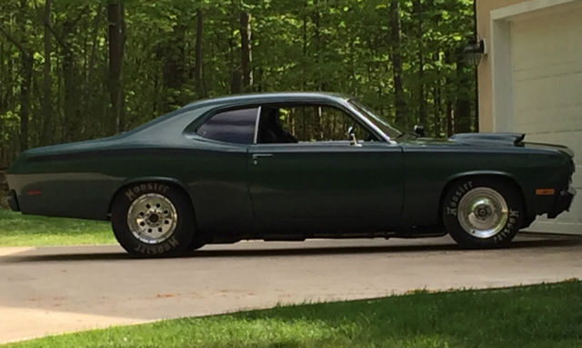 1970 Plymouth DusterStreet driven with clear Ohio title 470 cubic inch Compu-flo strokerHas run best E.T. 10.007 @ 133.78 at Norwalk, OhioMeticulously built by a NASA engineer Car Specifics:Engine: (470 cubic inch 750 horsepower)400 Low Dec Block Bored .030 with Deck PlatesZero Decked, Align-Honed and Clearanced for Stroker by Compu-FloRoss Forged Pistons with Total-Seal Gapless Rigs Mouted on EagleH-Beam RodsEagle Forged 3.9 Stroke Crank Shaft, Complete Balanced AssemblyIndy S-R Aluminum Cylinder Heads with Stage 3 Porting by Compu-FloHarland Sharp 1.6 Roller Rocker-Arm Kit with Compu.Cam Titanium RetainersPacaloy #943 Springs and Custom Push RodsComp-Cam Custom Solid Roller Cam .650 LiftMilodon External Oiling System with Milodon Oil PanAluminum Water Pump Housing with Molodon High Volume Water PumpIndy #400-2 Intake ManifoldTTI 2" Ceramic-Coated Header System with Removable 3" Exhaust SystemMSD Distributor with #8253 HVCII Coil, MSD Spark-Plug Wires, and Digital 6-Plus Ignition ControlFluid Dampner Harmonic BalancerHolley 850 cfm Double Pumper with Proform Aluminum High Performance Center Body Chassis:AAR Bolt-on Fiberglass 6-pack Hood with Fully Functional Air ScoopAAR Fiberglass Front Bumper with Aluminum BracketsWillwood Disc Brake System, Front, Back, and Master CylinderRMS Adjustable Strut RodsRMS Adjustable Upper Control Arms2" x 4" x .083 Wall Sub-Frame ConnectorsMini-Tubbed 3" for Tire ClearanceCaltracs Springs, Traction Bars, and 9 Position Adjustable Rear Shocks26" Aluminum Radiator with Electric Cooling Fan and Shroud AssemblyRoll Cage 1-3/4" Mild Steel with Driver's Side Swing Out BarDrive Train:727 Torqueflite Fresh Rebuild with Alto Red Discs and Kolene SteelsTurbo-Action #70011 Reserve Pattern ShifterCompletely Wired Command CenterTurbo-Action #156 Manual Valve BodyA&A Aluminum Front DrumA&A Rollerized Rear Drum KitTurbo-Action Custom Build 9" Hi-Stall Foot Brake Converter2 Quart Extra Deep Transmission PanLocking Dip-Stick and TubeCSR 836 Super Transmission ShieldDynotech 3-12" Diameter Chrome/Moly Drive ShaftNarrowed 8-3/4" 742 Rear End with Moser Spool, 35 Spline AxlesMark Williams Billet Bearing Cap, Chrome/Moly Pinion Yoke, 4:11 GearsStand Alone Transmission Fluid Cooler with #6 Stainless Braided LinesElectrical:Optima Rear Mounted Battery with #1 Gage Battery CablesEast Coast 75 Amp #2002 Super Mini AlternatorFiber-Glas Dash Panel Insert with Autometer Water-Temp, Volt, Oil Pressure, Vacuum Gauges, 10,000 RPM TachExterior Mounted Fuel Pressure GaugeMSD 8952 Shift LightFuel System:8 Gallon Fuel Cell with Foam PLUS new 16 gallon cell and brackets to go with carBarry Grant #280 Fuel Pump and RegulatorAll Fuel Lines S/S Braided with #10AN from Fuel Cell to Pump and #8AN to RegulatorWheels and Tires:Front Wheels - Center Line 15 x 3-1/2 with 26" Diameter Hoosier Drag Front TiresRear Wheels - 15 x 10" with 28 x 10.5" Hoosier Drag Slicks Call for more details 216 310-1107I can help with shipping but will be at buyers expense.So if you want a turnkey serious street/drag car that is capable of running high 9 second 1/4s.This Duster might be for you!Possible Mopar trades: 1970-1971 Cuda, Barracuda, 1970-1971 Dodge Challenger, 1968 1969 1970 1971 Charger, 1968 1969 1970 road runner
