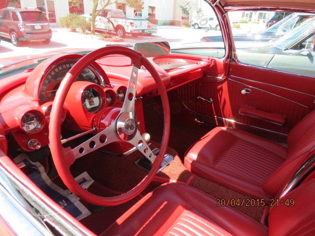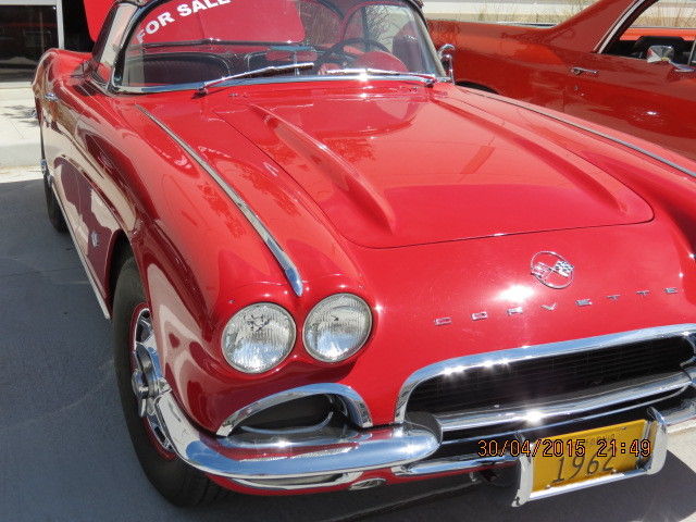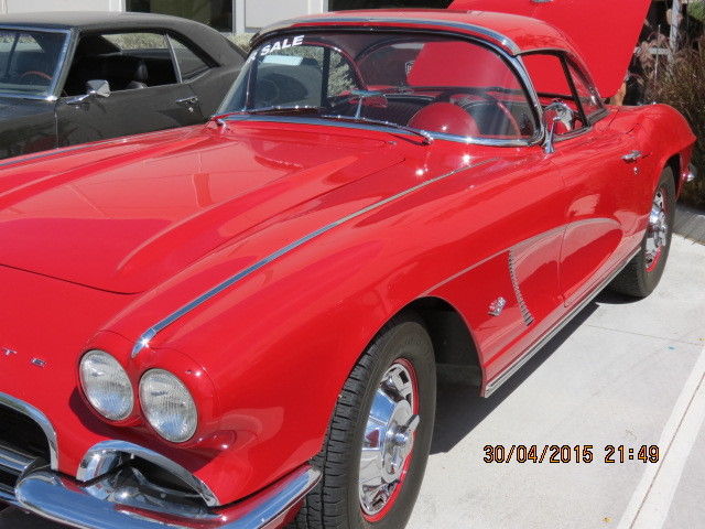 FORD 9'' TRACTION LOCK REAR-END. 3.25 REAR END RATIO , DISC BRAKES FRONT & REAR. EMERGENCY BRAKES MOUNTED TO 62 CORVETTE "PARK BRAKE" FACTORY TRACTION MASTER CAR. FACTORY REAR SWAY BAR. FACTORYCORRECT SHOCK ABSORBERS. FACTORY RIMS & HUB CAPS. FRAME OFF RESTORATION =BODY STRIPPED & REPAIRED TO ORIGINAL CONDITION. PRIMED & PAINTED WITH DUPONT CHROMABASE PAINT VICTORY RED FACTORY HARD TOP, NOS FACTORY CONVERTIBLE TOP (COVERED IN MERCEDES CONVERTIBLE FABRIC) ALL NEW FACTORY WEATHER STRIPPING ) ORIGINAL BUMPERS RE-CHROMED. NEW DATE CODED WINDOWS , CALIFORNIA CAR COVER CUSTOM COVER INTERIOR ALL GAUGES RE-BUILT AND FUNCTION PROPERLY, NCRS INTERIOR BY AL KNOCH IN LEATHER, SALT & PEPPER CARPETING WITH CUSTOM MADE MATS AND TRUNK MAT WONDER BAR RADIO RADIO DELETE WITH "CHEVROLET" INSIGNIA (VERY RARE) DRIVELINE SEASONED 4-BOLT MAIN HIGH PERFORMANCE BLOCK-PARALLEL DECKED, LINED HONED, BORED, 030 OVER, HONED WITH TORQUE PLATE, NEW CAM BEARINGS FORGED 10.25 TO 1 COMPRESSSION PISTONS STEEL BILLET CONNECTING RODS, STEEL CRANKSHAFT CROWER CAM, LIFTERS, RETAINERS, VALVE SPRINGS NEW GM BOMTIE CYLINDER HEADS- STAINLESS STEEL INTAKE & EXHAUST VALVES COMP CAMS STEEL ROLLER ROCKER ARMS, COMP CAMS STUD GIRDLE SPECIAL CORVETTE VALVE COVERS ALUMINUM CHEVY HIGH PERFORMANCE INTAKE MANIFOLD HOLLEY DOUBLE PUMPER HP SERIES CARBURETOR MSD ELECTRONIC IGNITION, CABLE DRIVEN DISTRIBUTOR & WIRES L88 FLYWHEEL, BENT TIP DIAPHRAGM CLUTCH BORG WARNER SUPER T10 TRANSMISSION WITH HURST FACTORY STYLE SHIFTER AND KNOB NEW HIGH PERFORMANCE HARRISON RADIATOR ORIGINAL FACTORY FAN SHROUD, ORIGINAL FACTORY OVERFLOW TANK FACTORY ALUMINUM WATER PUMP THE CAR HAS BEEN ASSEMBLED BY HAND PRECISELY TO THE SPECIFICATIONS FROM THE FACTORY WITH NEW FACTORY FASTENERS. NO EXPENSES WERE SPARED, HAS ONLY 465 MILES SINCE RESTORATION. THIS IS THE 820TH CORVETTE BUILT IN 1962. FEW CORVETTES BUILT HAVE THE CONVERTIBLE AND HARDTOP OPTION. AND IAM SURE THAT THERE A LOT I HAVE MISSED AND SPENT OVER $100,000 YOU WON'T FINE A NICER ONE THAT MADE TO RUN.AND LOOK GREAT!!! THANK YOU FOR YOUR TIME LOOKING AT THIS CAR,