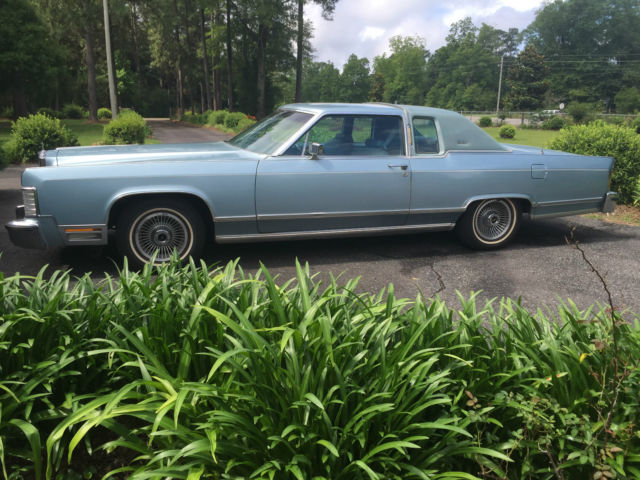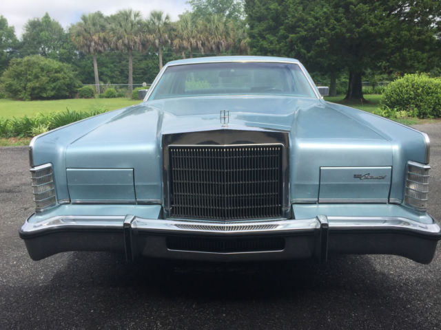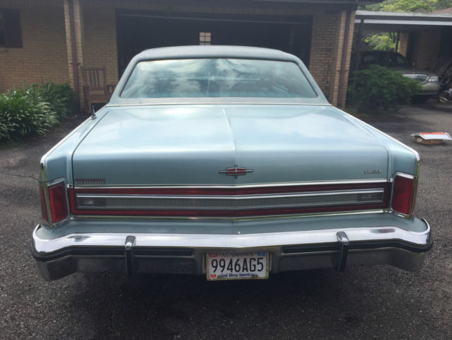 She has recently fallen ill and need to liquidate estate to assist with paying for medical care.Vehicle has been meticulously, exclusively maintained, with all records, by local Ford dealer. Always garaged, and her preference was to never drive in the rain. Car was purchased in Mobile, AL at Robinson Bros. Lincoln and has lived in Bay Minette, AL since 1979.There are 120,000 original miles that are majority highway. The car was used in the early 80's for trips to Vegas and Southern California. Otherwise, was used for trips to Mobile. Another vehicle was always used for in-town trips.InteriorThe light blue leather power bench seats are in perfect conditions. Not a scratch, tear or stain. The carpets are in great shape with some wear typical of 36 years. Faux wood dash is like new and steering wheel, glovebox etc are in perfect shape. Trunk has original carpet in perfect condition with no stains, tears or otherwise. ExteriorThe outside is in fantastic condition. There are no dents and a few minor surface scratches, but nothing into the paint. Chrome is in wonderful condition. One minor tire incident left the passenger front quarter panel trim piece slightly bent. It has been straightened, and is shown in picture of from passenger quarter panel; nearly unnoticeable. Tires are relatively new with much life remaining. Bumpers are straight etc. Vinyl top is in terrific condition with no tears but does show some fading as would be expected for 36 year old car. MechanicalThe engine is unaltered and meticulously maintained with all records and includes all original service manuals (see photos).2 weeks ago, the AC compressor shorted out, but AC worked perfectly prior to this. The vacuum actuated headlight covers have begun to "stick" a bit over the years, but assume line replacement and/or lubrication of pivots would remedy.Other than these items, the car is in perfect working order, including the power windows, seats etc.Please ask any and all questions prior to bidding. I have included a number of photos but have many more. Buyer is responsible for arranging shipping; vehicle is located in Bay Minette, AL.Deposit ($500) should be made within 48 hours of winning auction and full payment is due within 7 days.