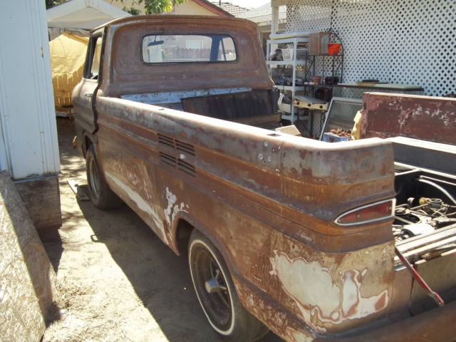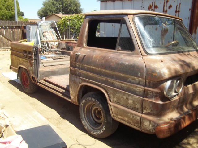 1962 Chevrolet Corvair Rampside Pickup Truck Runs & Drives, trany, brakes, engine, are all in good shape. 3/4 Ton Standard Transmission This Corvair Rampside is a fun truck to drive . You do not see these on the road much any more. I like its unique side ramp and low bed that make it easy to load. Has a rear mounted 110 HP air cooled engine muchlike a VW Bug from 60s and 70s. We started restoring this truck about 4 years ago. will continue if it does not reach our fair price. Runs & Drives motor has been rebuilt 110 hp not long before parked few years ago (Less than 10,000 Miles on Motor) Has been started from time to time been a while since last time maY START RIGHT UP WITH FUEL AND BATTERY, MAY NEED CARBS CLEANED WE DID NOT DRAIN THEM AFTER RAN LAST TIME. LINKAGE NEEDS ADJUSTMENT. Has been and is being kept out of the weather, just out for pics. Started Body Restoration. We have Removed 99% of paint by sandblasting and sanding. Needs New Tires, ,Bench Seat Vinyl is shot needs recovering. All Glass is good, Has dings, Has Some body rust and some sections of metal need replacing. We have a California title Tags are $98 to tag until Jan 31, 2016 Sold AS-IS For Help With Shipping Quote Or any Questions Feel Free To Call Us 209-8213-6977