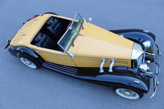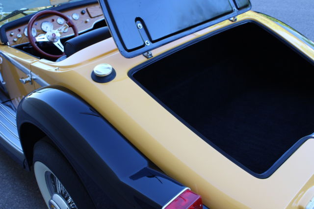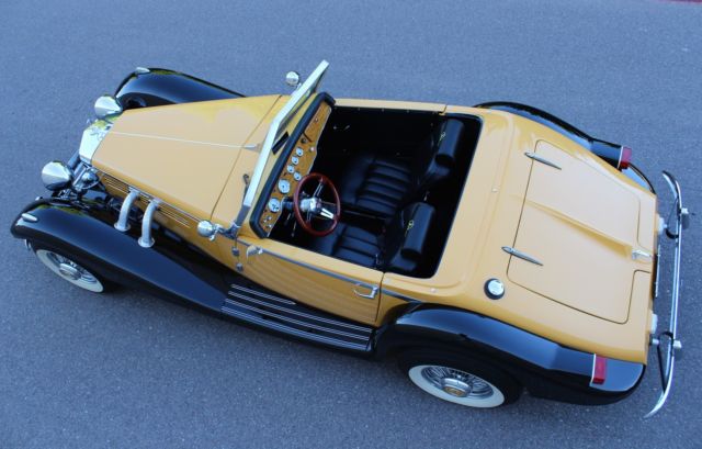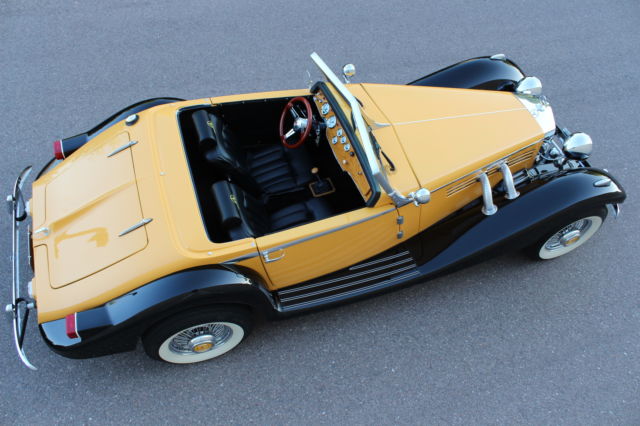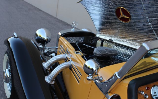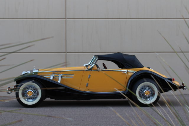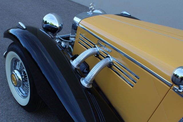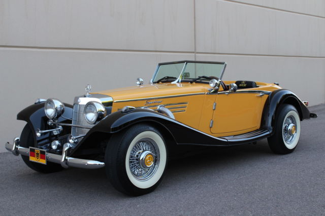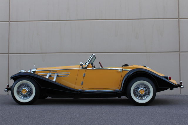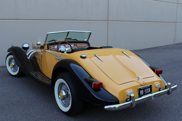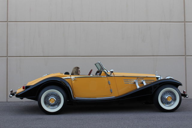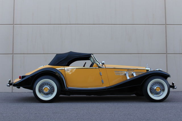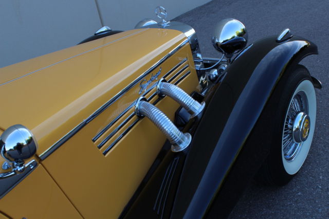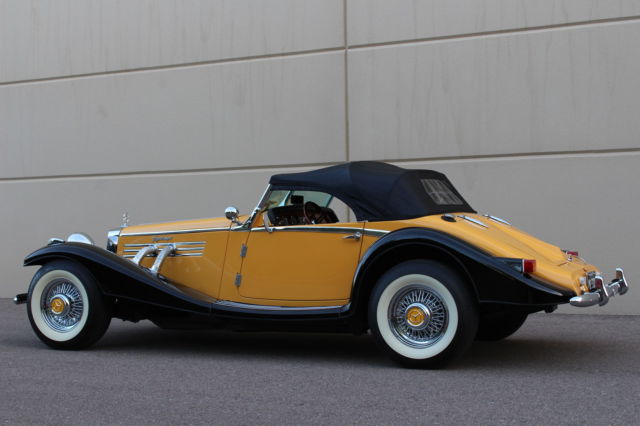 The donor car that was used to build this beautiful and super customized Replica was a Ford Mustang II, so the car has a very powerful Ford V6 engine, Ford manual transmission, Ford rear and front end....and a lot of other Ford Mustang components that you can find in any car parts store for a very good price, anywhere in US and even world wide. The frame was new custom made and the car is just under 15 Feet long. The motor is super dressed in Metallic Blue & Silver, the engine compartment is very nice and very clean, just ready for show . Underneath the car is very clean and no rust at all. The 2 tones paint on the car is in a very good condition, nice and shiny Black & Vintage Yellow , Chrome on the car is very shiny, Black convertible top, black interior in good condition, Full Wood dash & Steering wheel, Classic style gauges, very clean trunk, Wide White Wall Tires in almost new condition, Customized Mercedes Hub Caps, Customized Radiator Grill, body side Moldings, 2 Piece tinted glass windshield, Twin Trumpet, Dual working Fog lights, Dual Cowl Lights, left and right in working condition, Nice and big Headlights, Bumper uprights, ......etc. These are some of the options on this beautiful Replica. The car comes with roll up glass windows that were not installed yet, all the parts necessary to complete windows installation would be in the trunk, also a lot of car documentation including the original receipt of $ 12,000 that was paid back in '80's to buy just the kit. Please see the photos, they would talk for this Mercedes Recreation. Terms and conditions : Car will be sold on "AS is WHERE is" basis and buyer is responsible for the shipping of the car. Inspections are welcomed before the auction ends, Car is located in Phoenix Metro. A non refundable deposit of 500.00 would be charge and the remaining balance should be paid within 3 days of auction closed. The car is also listed for sale locally, so, I have the right to end this auction at any time. Good luck bidding on this rare Mercedes 500K Reproduction !!!