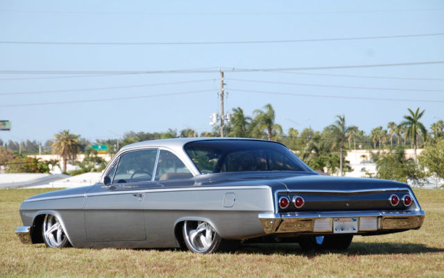 function passparaSC(){return '&baseurl;='+ escape((function(){var d = '';try{d=location.protocol+'//cgi.'+location.href.split('&domain;=')[1].split('&')[0]+'/ws/'} catch(e){d=location.href.substring(0,location.href.lastIndexOf('/')+1)} return d })()) + '&sitebaseurl;=http://www.auctiva.com&tagNum;=0';} <img src="http://ti2.auctiva.com/web/aswCredit.gif" border="0"><br><a href="http://www.auctiva.com/?how=scLnk0" target="_blank"><img src="http://ti2.auctiva.com/images/sc1line0.gif" border="0"></a> The floors got all new sheet metal and raised to make clearance for the complete ART MORRISON chassis. The chassis received a complete 4 way RIDE TECH air ride system with BLISTEIN shocks. new Ford 9" rear went on with 3.70:1 gears. Wilwood 4 and 6 piston brakes. Ricks Hot Rods stainless tank. Car sits on one off custom Asanti wheels 20/8 and 22/12. Chads headers and custom exhaust that runs through the Art Morrison chassis. No rubbing, and no scraping the ground, it can be driven at any height. Under the hood there even more to be blown away by, a brand new crate ZR1 Corvette LS9 fuel injected Motor Supercharged with 638 Horse Power!!! The engine was set as far back as possible for good weight distribution and handling. Street and Performance pulley system. GM Performance 4L80 4 Speed automatic transmission. The car goes down the road or highway with a smooth shift at any speed. Steering is power rack and pinion. Power windows, power brakes. Ice cold A/C. This car is a dream Resto mod to drive. Everything is easy and smooth. The interior is all leather and suede. Porsche carpeting and suede headliner. 6 way sound system with hidden amps. IDIDIT tilt steering column. Classic Instrument Gauges. Lokar shifter on the floor wrapped into custom center console. Trunk finished in leather a suede to match interior. The exterior was painted in a beautiful metallic charcoal gray finish with a bright metallic silver roof to match the center color on the custom Asanti wheels. Lightly smoked glass all around not cheap tints. Modern LED projector headlights and everything else kept factory looking.This Pro touring bubble top was built with only high dollar parts and would take well over $250,000 to duplicate. Being sold at a fraction of the price if you were to have it built. if you want one of if not the baddest Bell Air bubble top in the country he's your opportunity. there are over 150 pictures here: https://www.flickr.com/gp/neil-/54vAi8/ D&P Chevy website: http://www.dpchevy.com/ some links for articles about the car: http://www.dpchevy.com/2011-11/1962-chevy-bubble-top-custom/ http://www.lsxtv.com/news/dp-classic-chevys-62-bubble-top-bel-air-with-ls9-power/ http://www.hotrod.com/cars/featured/1403-1962-chevy-bel-air/ http://www.superchevy.com/features/sucp-1112-1962-chevrolet-bel-air/ HIGH DOLLAR TRADES PLUS CASH WILL BE CONSIDERED, NO MOTORCYCLES if you are a serious buyer, and can buy this car but you have questions please call 305 502 7470 do not call for information on how to build your car, or where you can find the parts (wheels,engine,lights) this is a "for sale" listing and questions should be for those that can afford to buy this car only.Payment Terms:Wire transfer only.$10,000.00 non-refundable deposit in 24hours of agreed purchase, balance within 10 daysonce funds clear we will help assist in shipping anywhere in the world.Thank you