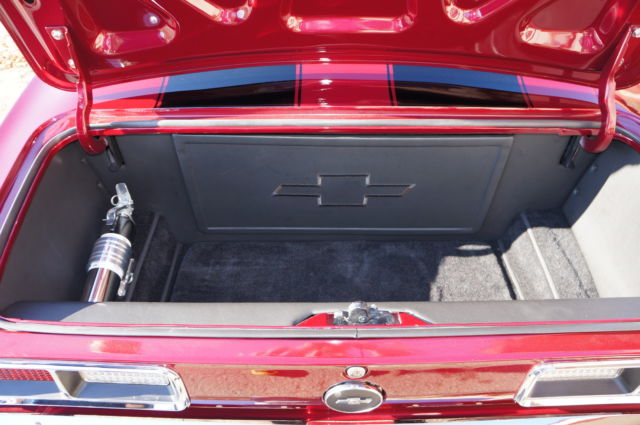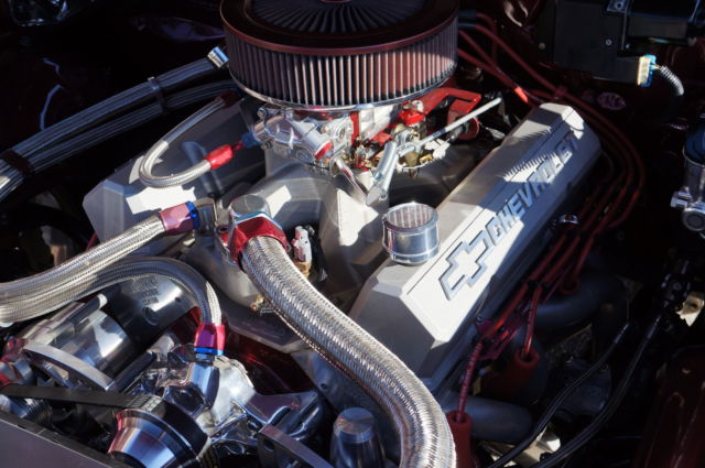 Complete frame off Resto Mod with over $80k invested. Restoration completed in 2008 and used strictly for car shows and cruise-ins. 2,350 miles on restoration and store in climate controlled garage. Bill Mitchell Motown 427 small block, 520 HP 750 Quikfeul Carburetor MSD - 6AL ignition box with MSD coil Art Carr 200R-4, 4 speed automatic transmission - installed within last 9 months Moser rear end 373 gears, posi-traction, 33 spline axel B-cool aluminum radiator with dual electric fans Tubular A-arms, QA-1 coil over shocks front and rear Competition Engineering bolt in sub frame connectors, rear shock repositioner and traction bars. All bushings replaced with Energy Suspension polyurethane Detroit Speed 2" drop coil springs front end and 3" drop leaf springs in rear Aerospace Billet 4 -wheel disc brakes with stainless brake lines 3" Flow Master Super 44 mufflers 16 gallon Stainless fuel tank with sump and electrical fuel pump BF Goodrich G-force T/A KD radial tires on Billet Aluminum American Racing rims, 17" front and 18" rear 2009 and 2012 Best in Class - New Orleans "World of Wheels" 2009 ISCA - Street Achievement award for Interior - Black with suede inserts on front and rear seats, door panels and suede head liner all with sound deadening insulation. Custom console with Eclipse AM-FM-CD 5000 with Memphis amp Custom paint - Bordeau Red with black stripes on hood and trunk Just installed smoke glass throughout Any questions please contact James at (5 0 four) - nine 15 - 00 two 7 Listing vehicle for my neighbor. Any questions sent via email I will ask him and get back to you as soon as possible. Car os located 25 miles southwest of New Orleans. Sold as-is with no warranty implied. If you would like more pictures or would like to come inspect or send a third party inspector that is perfectly fine. $500 deposit through PayPal due immediately with remainder due within 7 days of sale. Shipping is responsibility of buyer but willing to assist in loading vehicle with third party shipper.