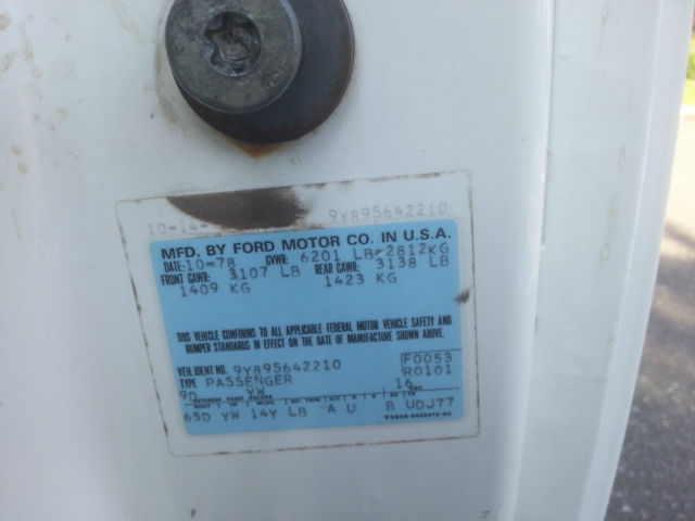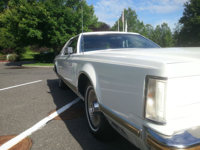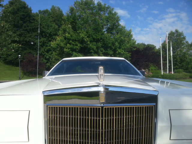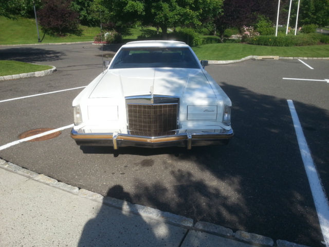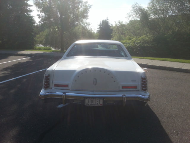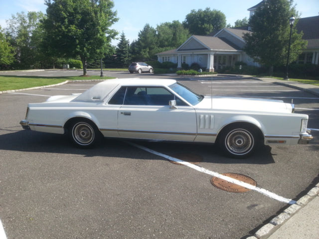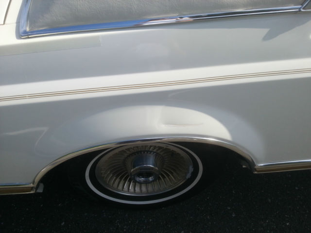 1979 LINCOLN MARK V COLLECTOR SERIES WHITE WITH MIDNIGHT BLUE CLOTH 41,250 ORIGINAL MILES RUST FREE VEHICLE EQUIPPED WITH: * 6.6 LITRE /400 CID V-8 * C-6 AUTOMATIC TRANSMISSION * COLOR KEYED TURBINE ALUMINUM WHEELS * DEFROSTER GROUP * HEADLAMP CONVENIENCE GROUP * ILLUMINATED ENTRY SYSTEM * INTERVAL WIPERS * PASSENGER RECLINER * POWER LOCKS * POWER LUMBAR DRIVER'S SEAT * POWER VENT WINDOWS * 6-WAY POWER SEAT * SPEED CONTROL * TILT STEERING WHEEL * LEATHER BOUND OWNER'S MANUAL * COLLECTOR SERIES TOOL KIT * LANDAU VINYL ROOF * AIR CONDITIONING * 4-WHEEL DISC BRAKES * CARTIER DAY/DATE TIMEPIECE * SOLID STATE IGNITION * LEFT HAND REMOTE MIRROR * CORNERING LIGHTS * WHITE SIDEWALL TIRES EXTERIOR: * ALL BODY LINES ARE STRAIGHT * CHROME STILL SHINES * GREAT FIT ON DOORS, TRUNK AND HOOD INTERIOR: * DESIRABLE KASHMAN II CLOTH INTERIOR * LEATHER PADDED DASH AND CENTER CONSOLE MECHANICAL: * STARTS AND RUNS SMOOTHLY * TRANSMISSION SHIFTS SMOOTHLY * BRAKES ARE EXCELLENT * AIR CONDITIONING BLOWS ICE COLD LIST OF THINGS DONE TO VEHICLE: * TIRES REPLACED 1/2014 * EXHAUST/MUFFLER 1/2014 * ALL SHOCKS 1/2014 * ALL BELTS 5/2014 * SMOG PUMP 3/2015 * MASTER CYLINDER 5/2014 * RADIATOR HOSES 4/2015 * POWER STEERING HOSE 4/2015 * DIFFERENTIAL GEAR FLUID 5/2014 * TRANSMISSION FLUID 5/2014 * BRAKE FLUID 5/2014 * POWER STEERING FLUID 4/2015 * OIL AND AIR FILTER 4/2015 @ 41,000 MILES * FUEL FILTER 11/2014 * WINDOW MOTORS 5/2014 * ANTIFREEZE 5/2014 FOR A 36 YEAR OLD VEHICLE IT IS IN AMAZING SHAPE WITH VERY LOW MILES! CAR RUNS AMAZING. THERE ARE SOME COSMETIC FLAWS WHERE THE PAINT HAS BEEN BLENDED UNDER THE ROOF LINE AND A COUPLE SPOTS ON THE HOOD AND AREAS TOUCHED UP, BUT AN ORIGINAL CAR OUT OF NEW MEXICO. CAR IS RUST FREE AND UNDER CARRIAGE IS RUST FREE AS WELL, INCLUDING THE FRAME. ONLY INTERIOR FLAW SINCE BEING IN THE SUN IS THE REAR SEAT BACK HAS SOME FADING AND A FEW REPAIRABLE TEARS. EVERYTHING WORKS ON THE CAR INCLUDING THE CLOCK WHICH KEEPS PERFECT TIME AND DAY AND DATE(RARE). THE AIR CONDITIONING IS THE COLDEST I EVER FELT, STILL ORIGINAL R-12 FREON I BELIEVE. FACTORY RADIO PLAYS WONDERFULLY AS WELL AS THE WORKING FACTORY CB! (NOT SURE IF 8-TRACK WORKS SINCE I DO NOT HAVE ONE TO PLAY) THIS IS A GREAT COLLECTOR CAR TO BUY, THE VALUE ON THESE COLLECTOR SERIES ARE ON THE RISE. IT'S THE RIGHT COLOR, VERY LOW MILES, AND MECHANICALLY SOUND. CAR IS ALSO BEING SOLD LOCALLY, AND BEING SOLD AS IS, BUYER IS RESPONSIBLE FOR SHIPPING. PLEASE BE A SERIOUS BIDDER AND HAVE YOUR FUNDS IN ORDER. GOOD LUCK BIDDING!!