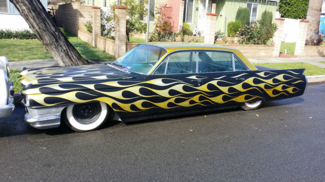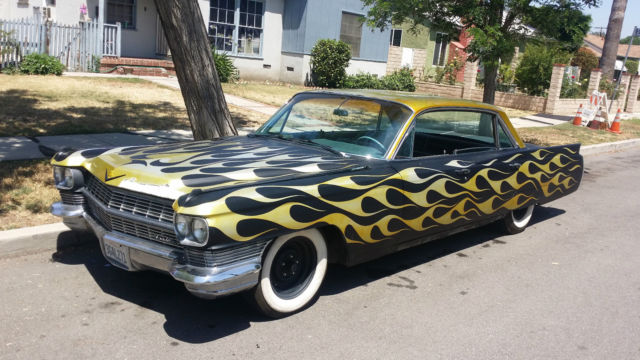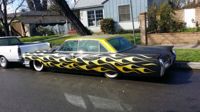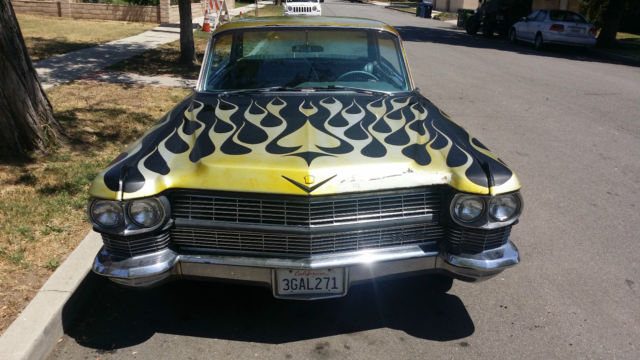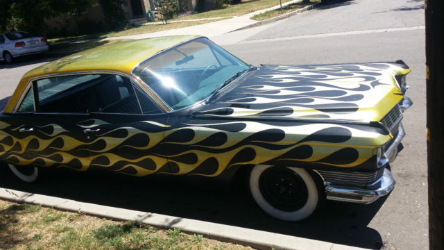 1964 sedan deville. No post. Overall a solid car, but for like anything 64. Some things need attention. Driver floor needs to be replaced. 65 bucks for piece on eBay. Hood has some rust and so does trunk lid. Paint needs work too. Depending on your preference in scheme. Some of the flake has a little curling around the windshield. Engines fires right up and has lots of power however it has blowby, so it smokes a little when driving, could be valve guide seals, could be rings. Has a rebuilt edelbrock 600cfm carb, and new mechanical fuel pump filter and lines 4 switch airbag, 1/2" line and 10 gallon tank in trunk. New compressor, but it could use 2 if you want a quicker pump White walls all In decent shape, safe to drive on. Has an electrical bug too, keeps popping brake, running lamp fuse. Haven't found out why, headlights work, all windows work New interior, clean title in hand Beautiful car that's an attention whore, wish I didn't have to sell. But trying to buy a house. Please feel free to contact me for more pics or more info, I'll be happy to send whatever